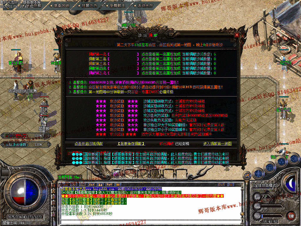 【沙城奖励】:新区开放第二天晚上拿沙,沙奖励丰厚,区区人气