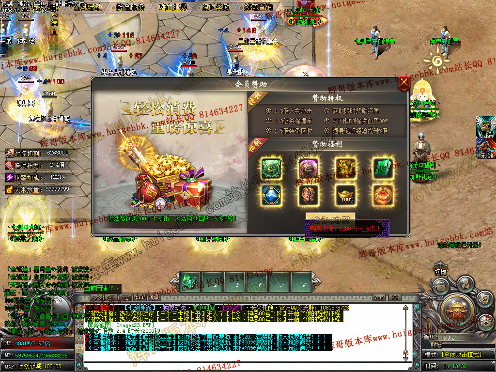 (充值比例: 七剑币1:10 --- 点卷1:10000)