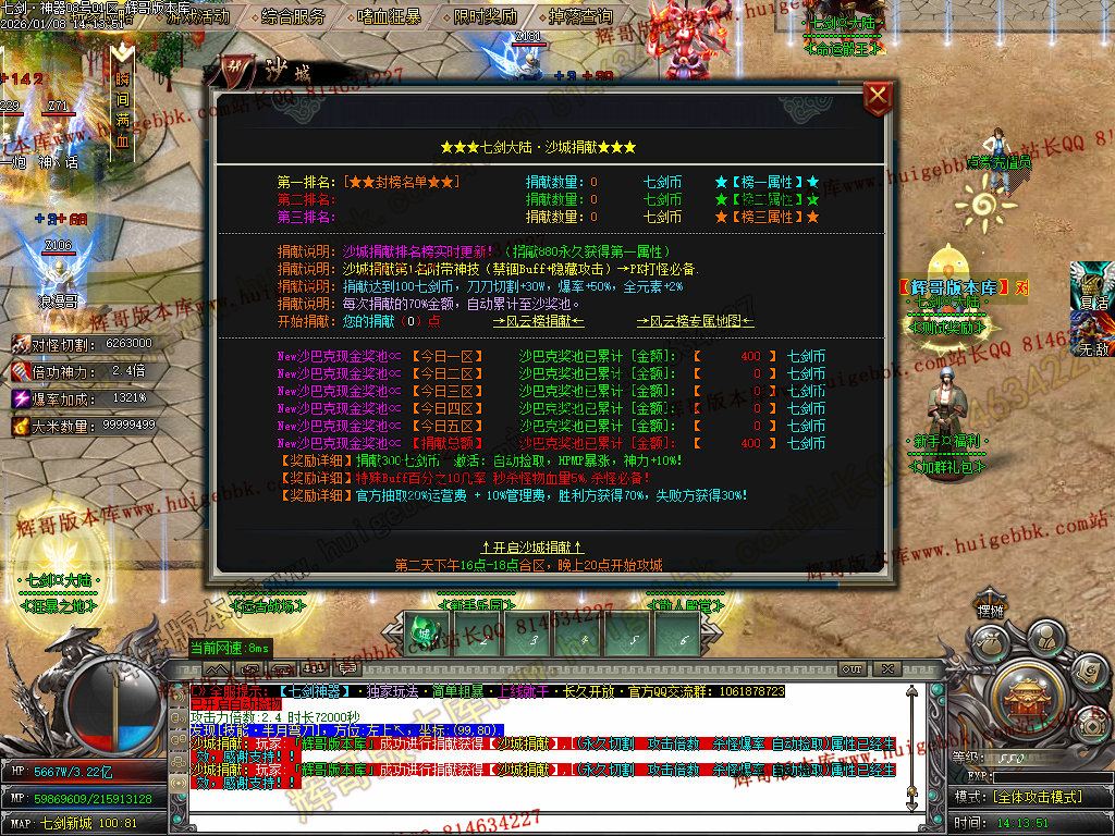 │充值散人玩法 → 赞助20米 + 沙捐30米 + 狂暴10米! │