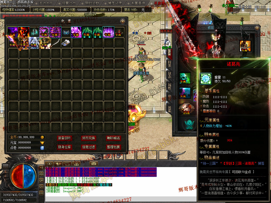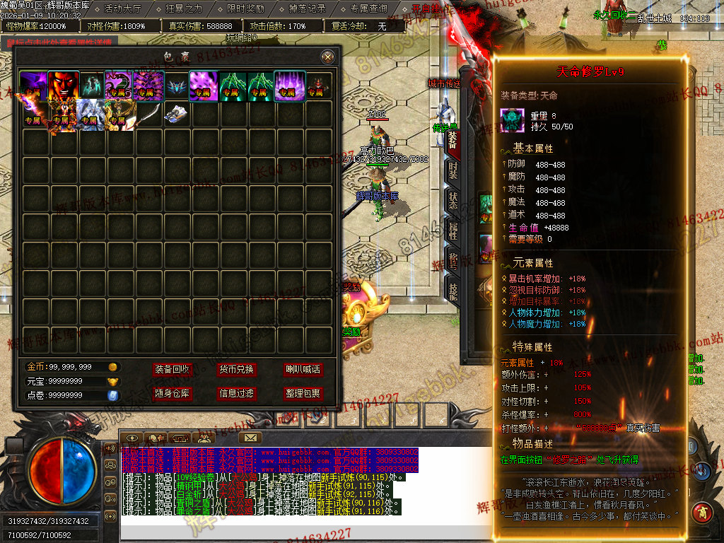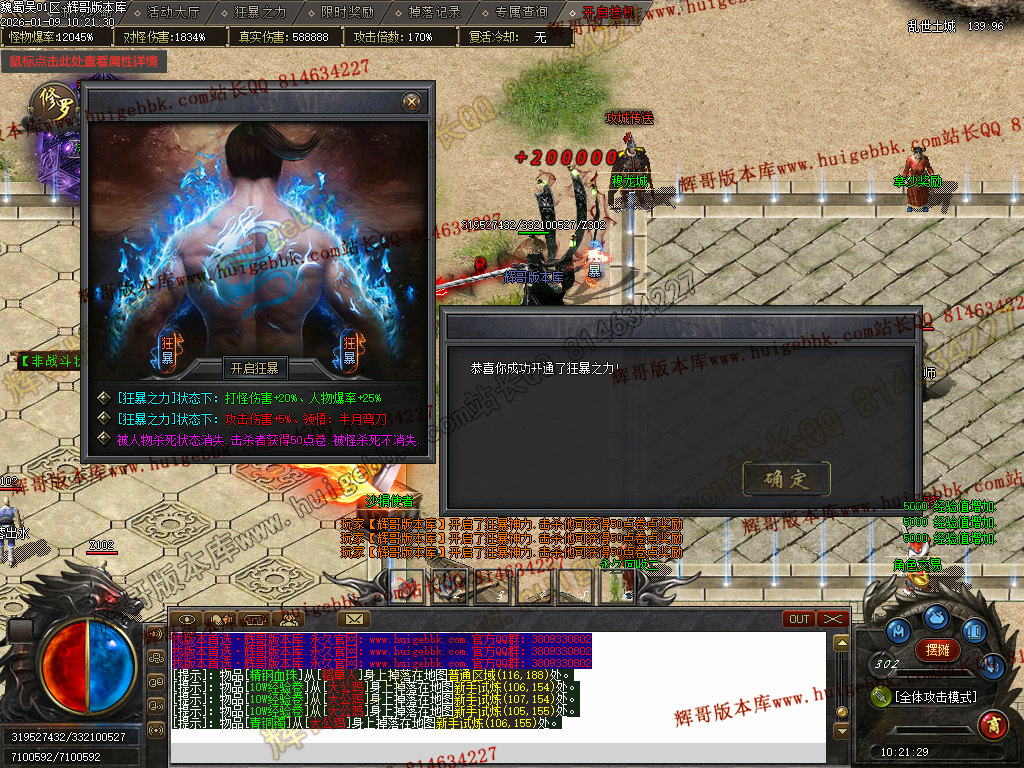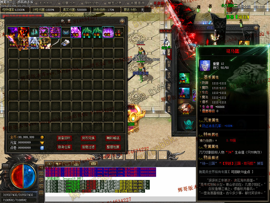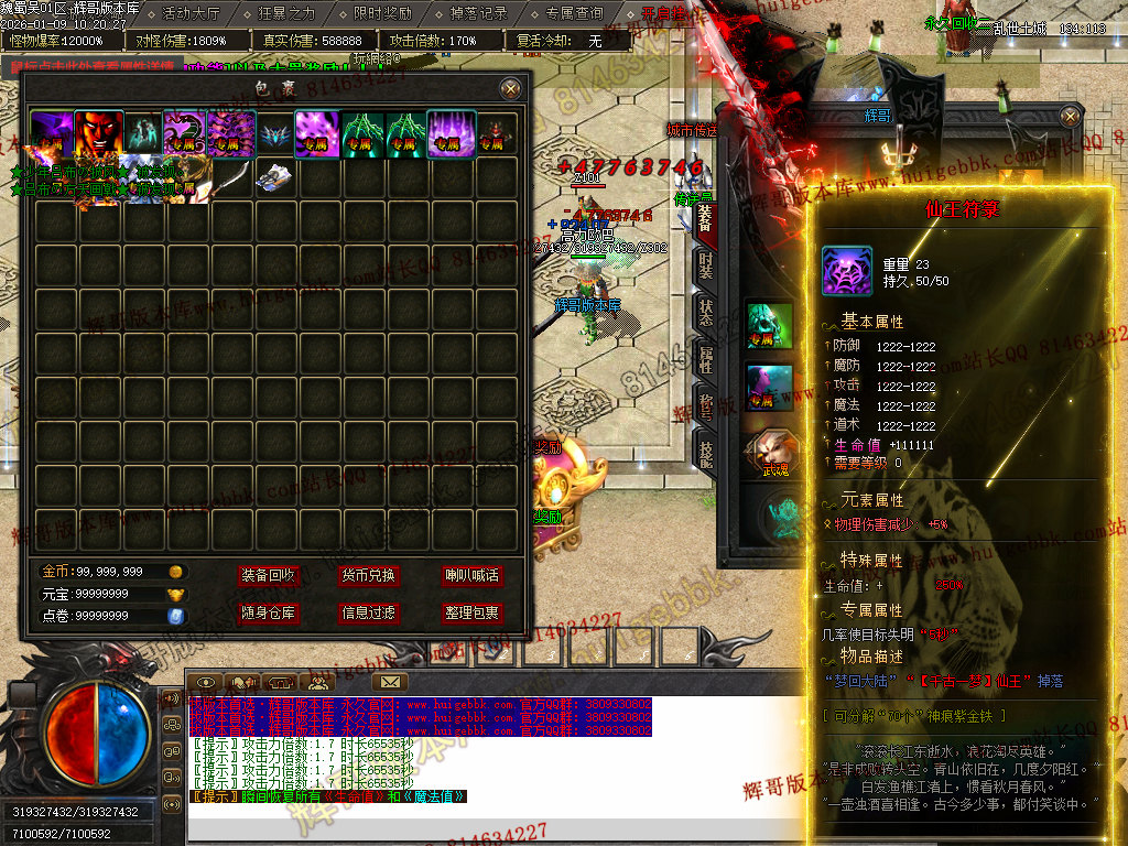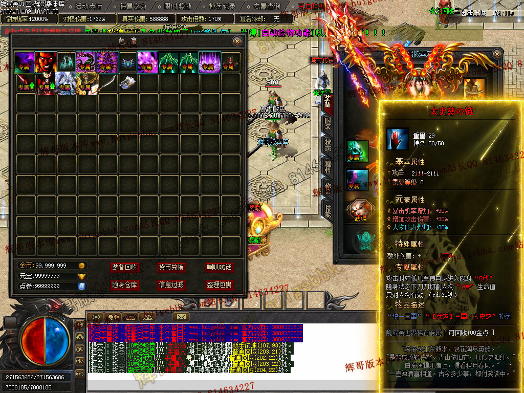 4、后续打到材料,金币,元宝,点卷,可自行使用变强或出售