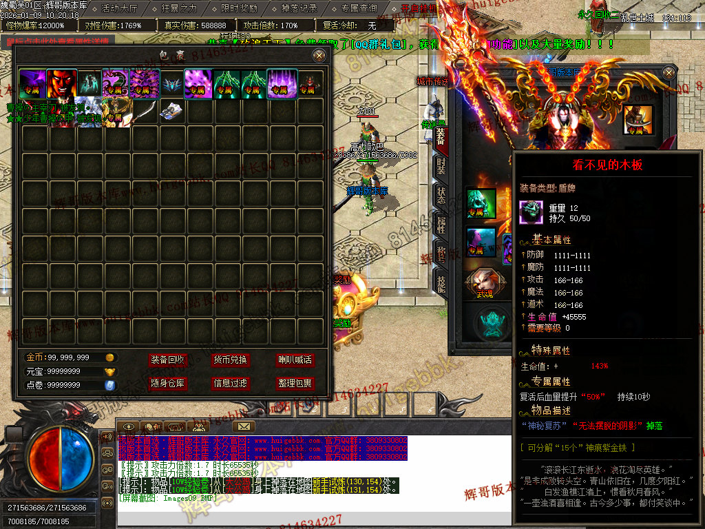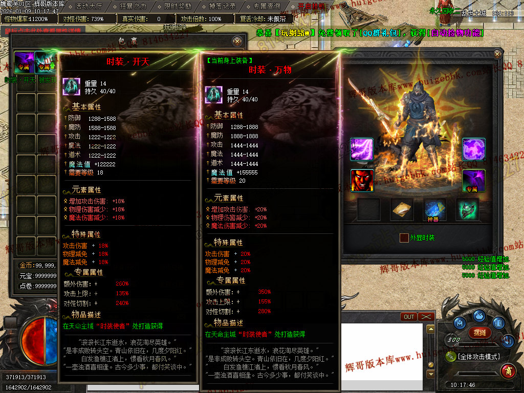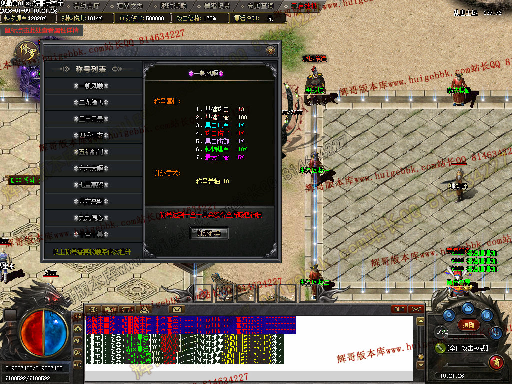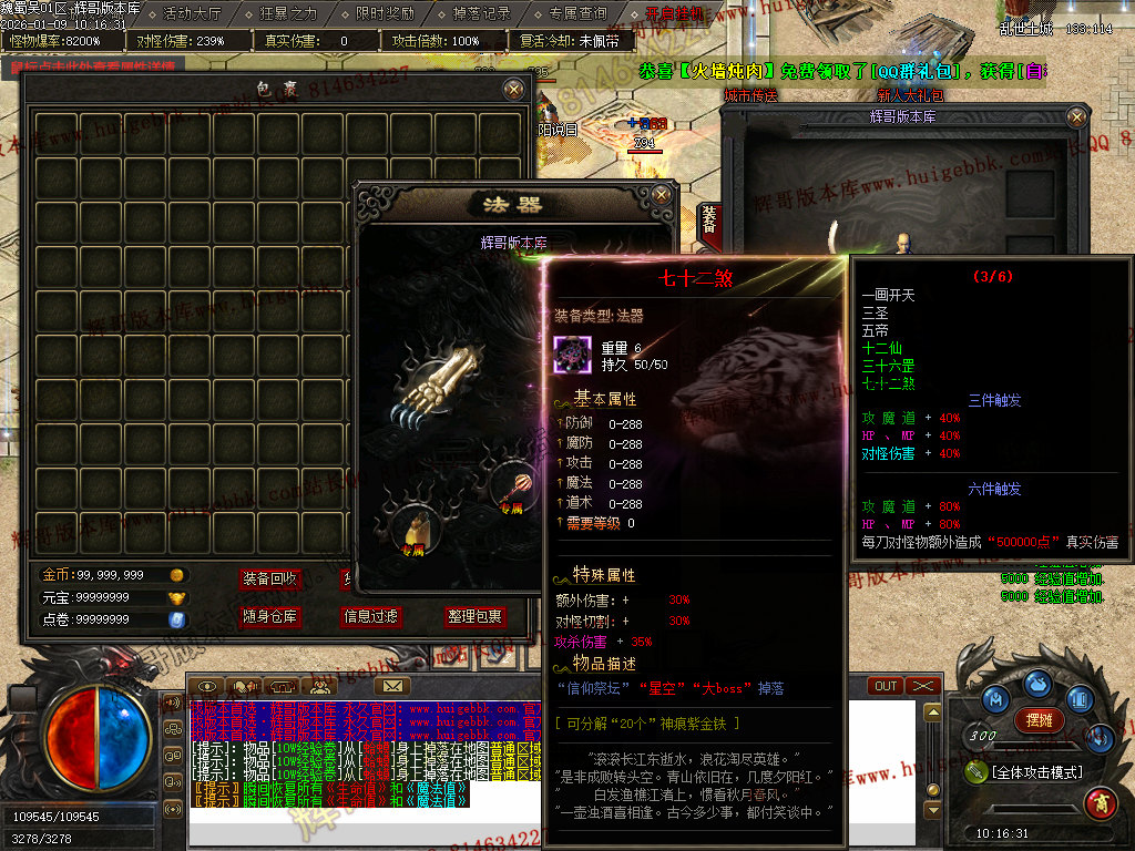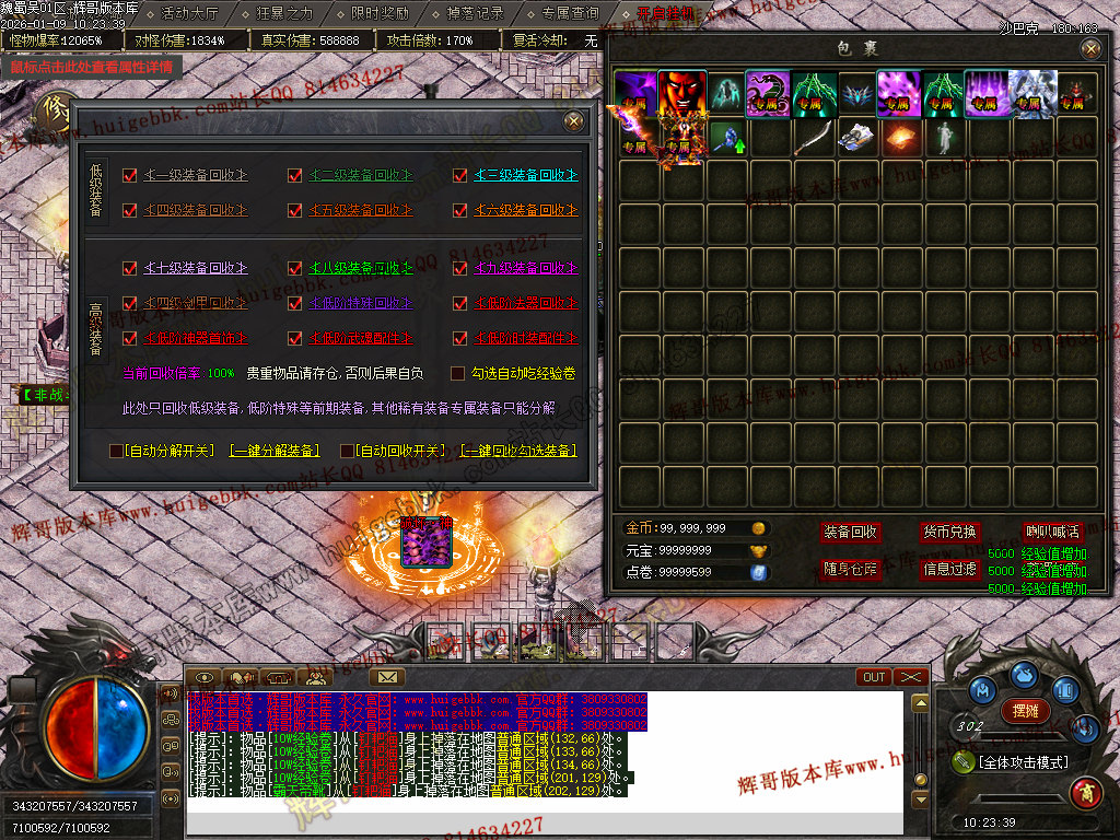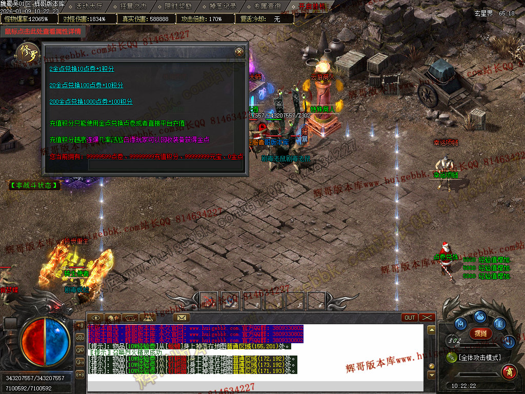 4、后续打到材料,金币,元宝,点卷,可自行使用变强或出售