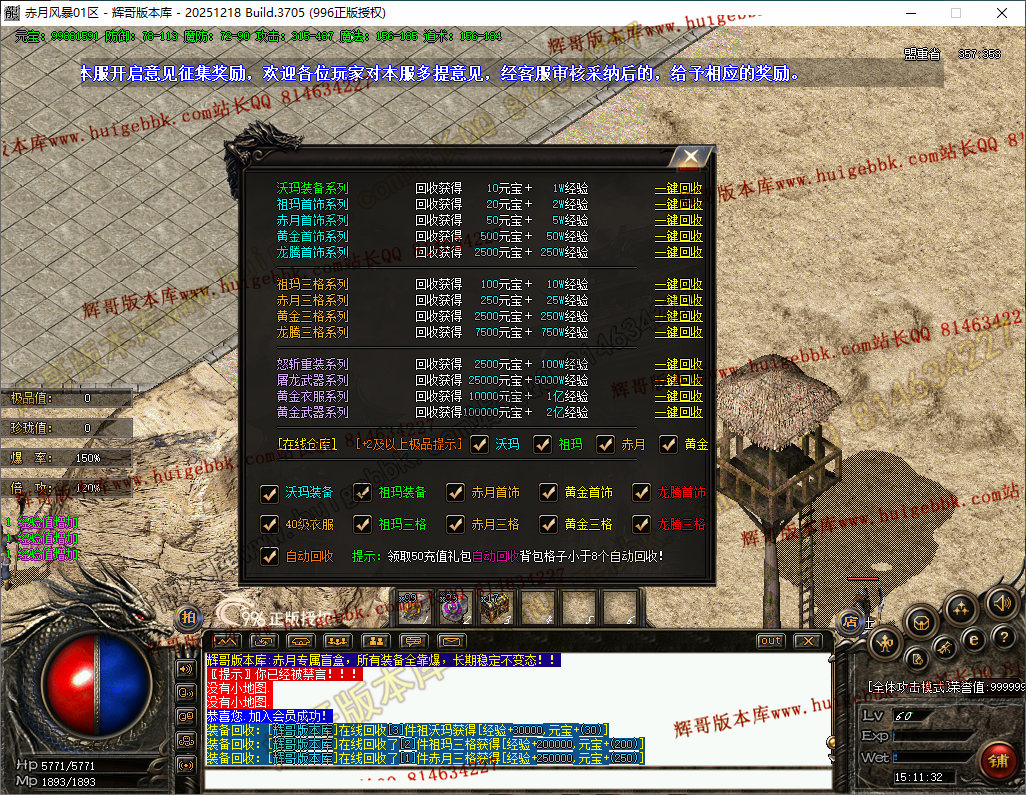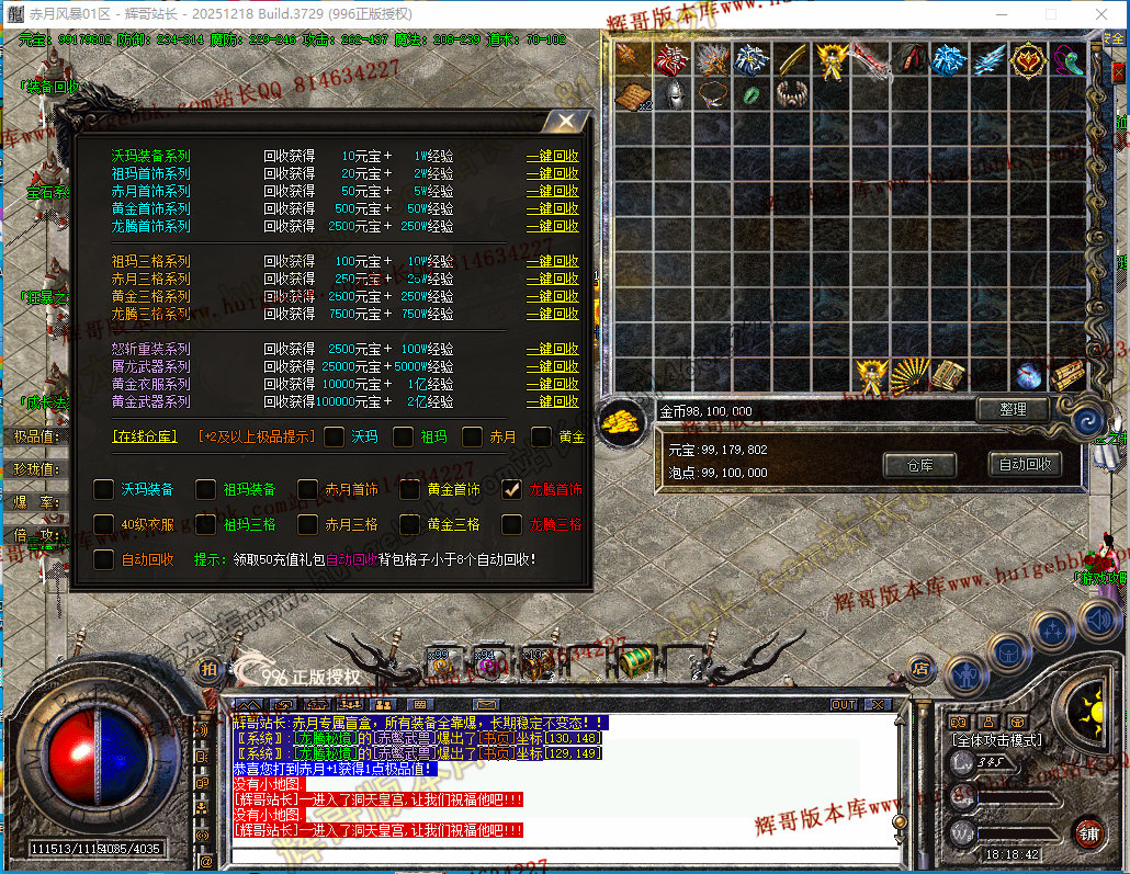 1.76赤月风暴 微变三职业 第三大陆 背包神器 四级技能 宝石镶嵌 法师分身 专属宝宝 带网站 自动回收 自动拾取
