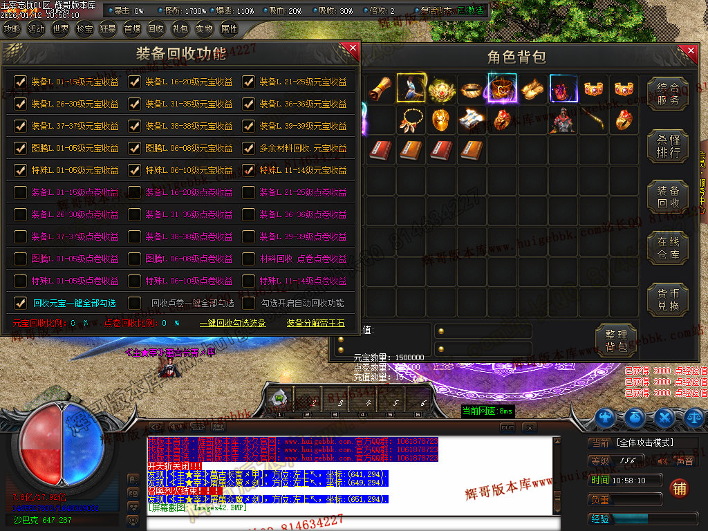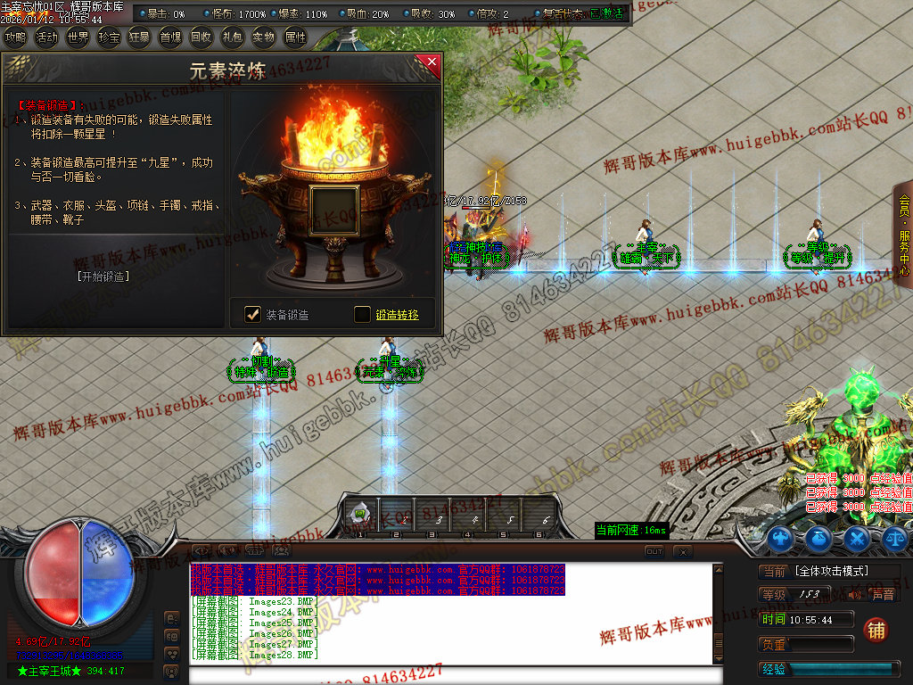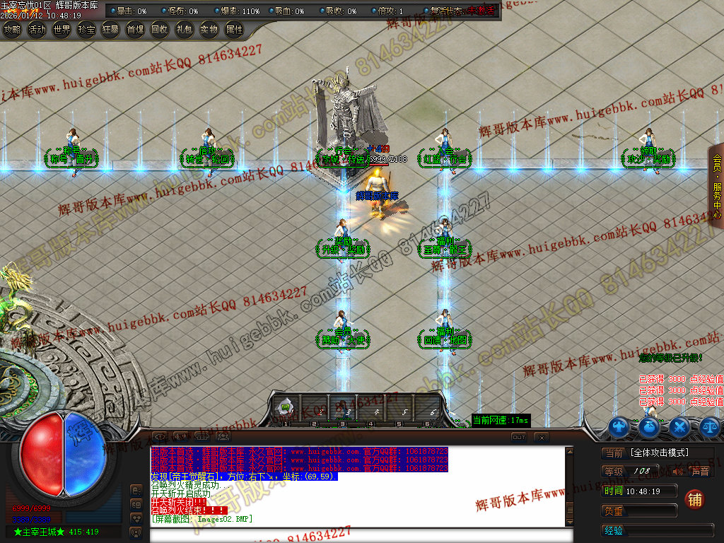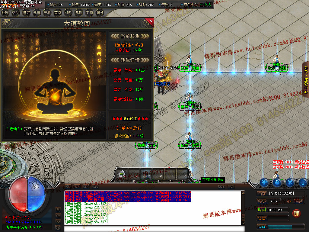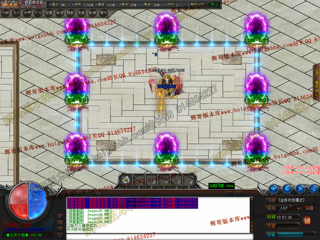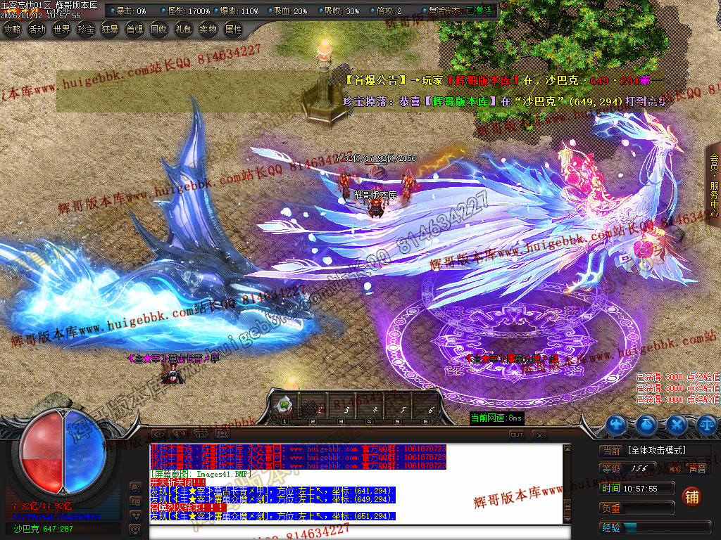第六步:人物等级达到450级、10转,去仙古圣地发展,里面爆本服所有装备!