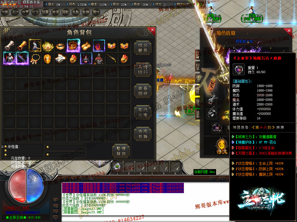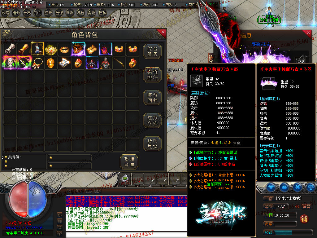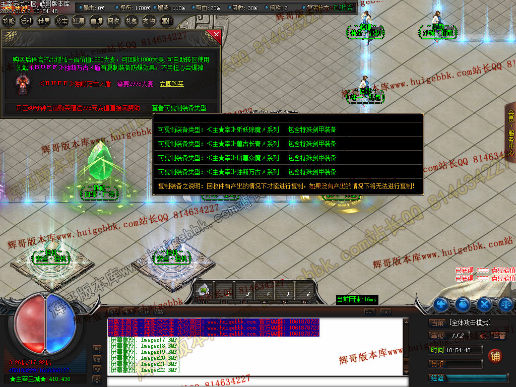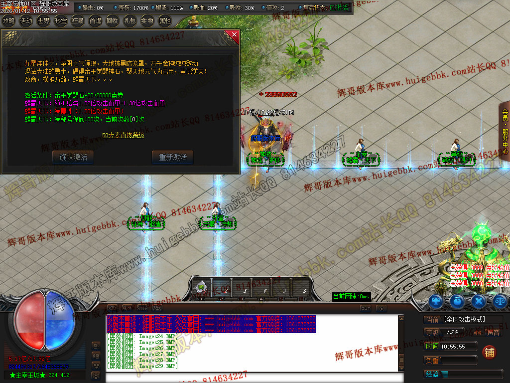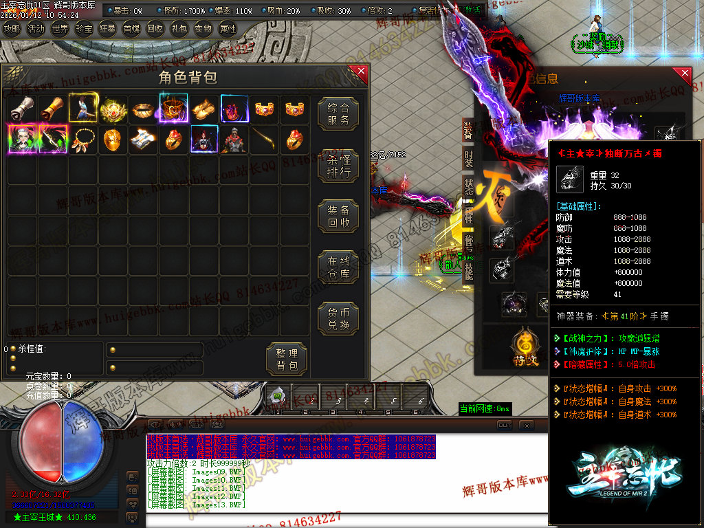 第六步:人物等级达到450级、10转,去仙古圣地发展,里面爆本服所有装备!