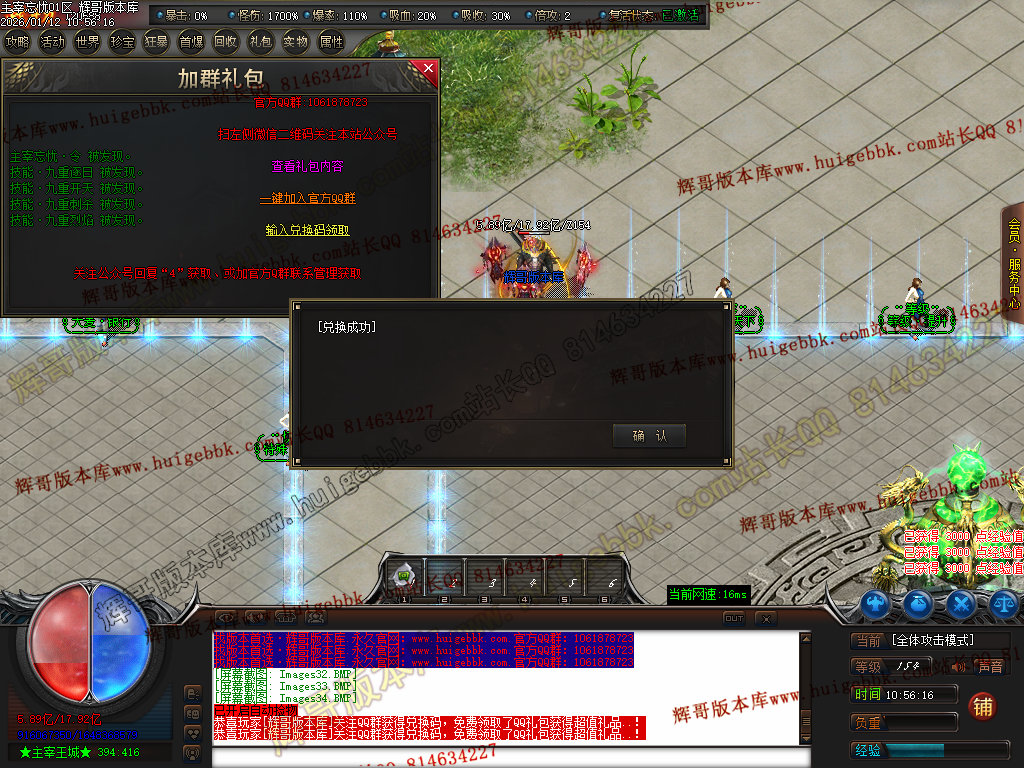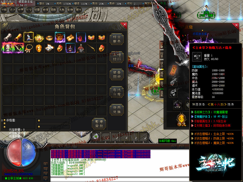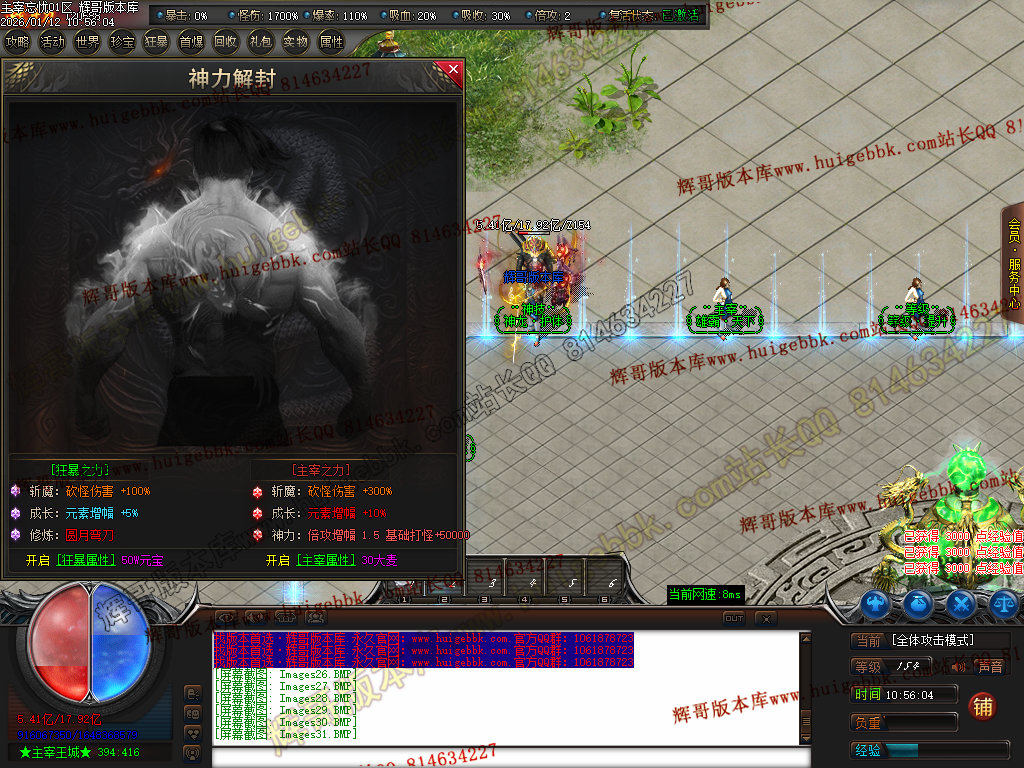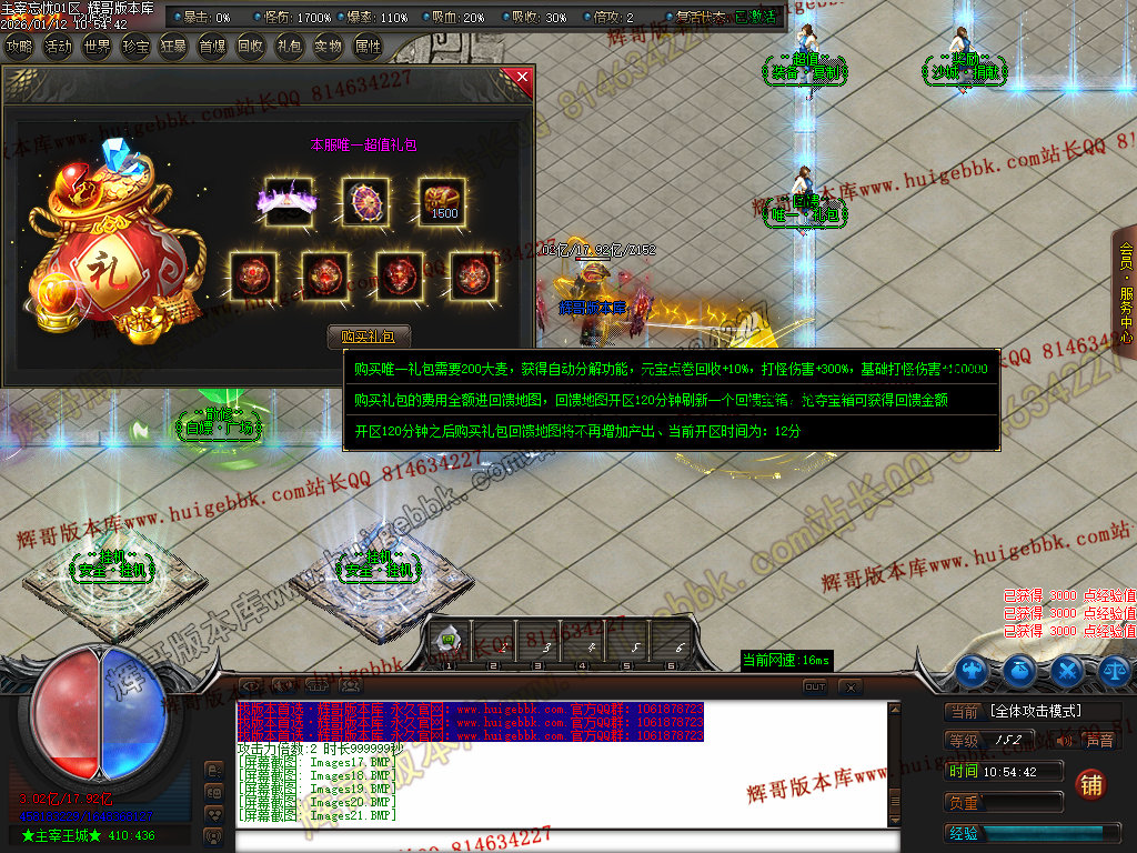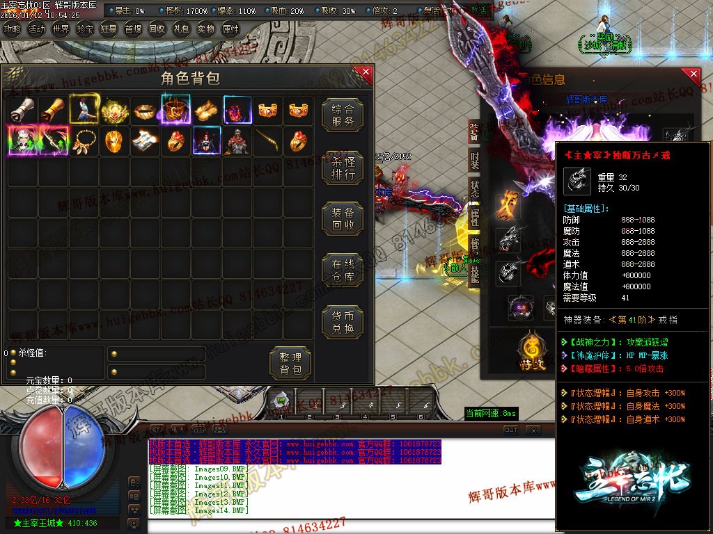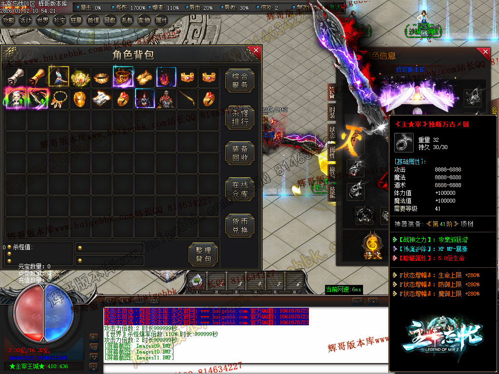 第六步:人物等级达到450级、10转,去仙古圣地发展,里面爆本服所有装备!