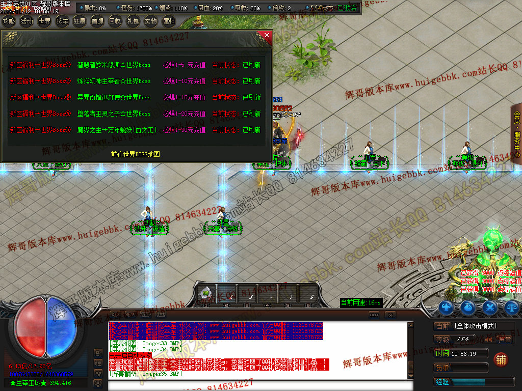 第四步:先去免费沙捐、收费沙捐地图打怪,收费沙捐玩家击杀怪物爆两次!