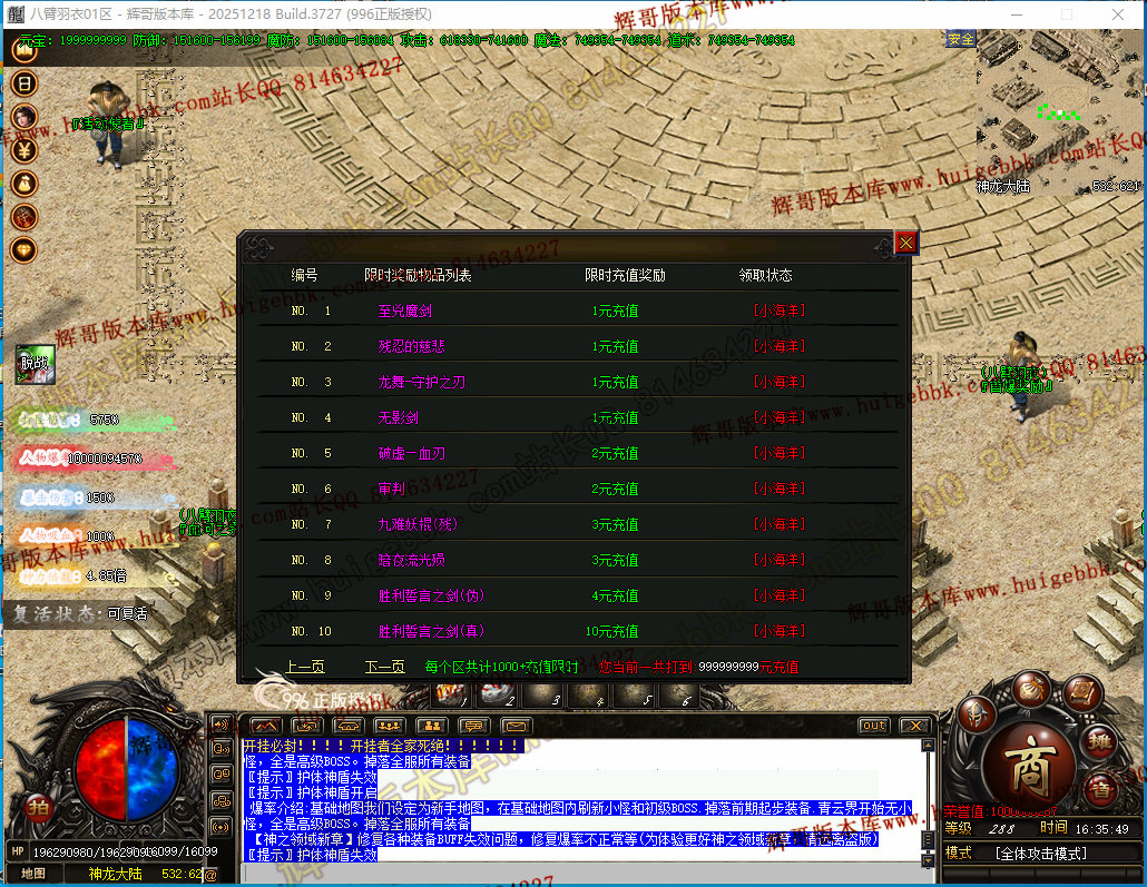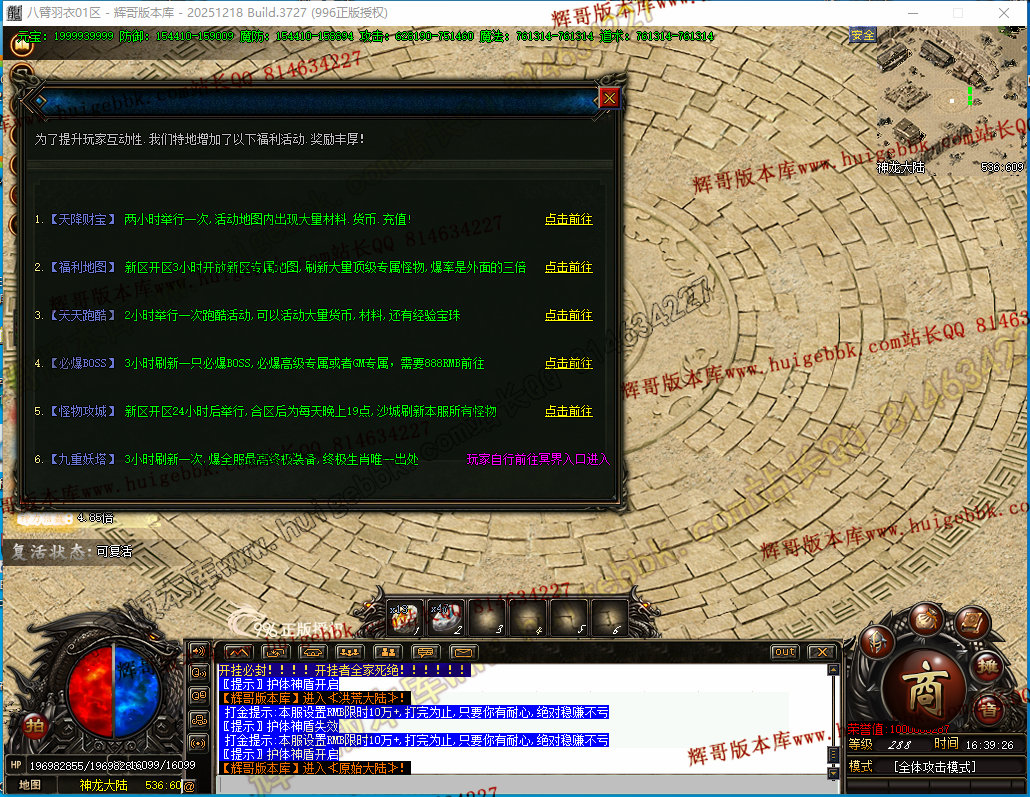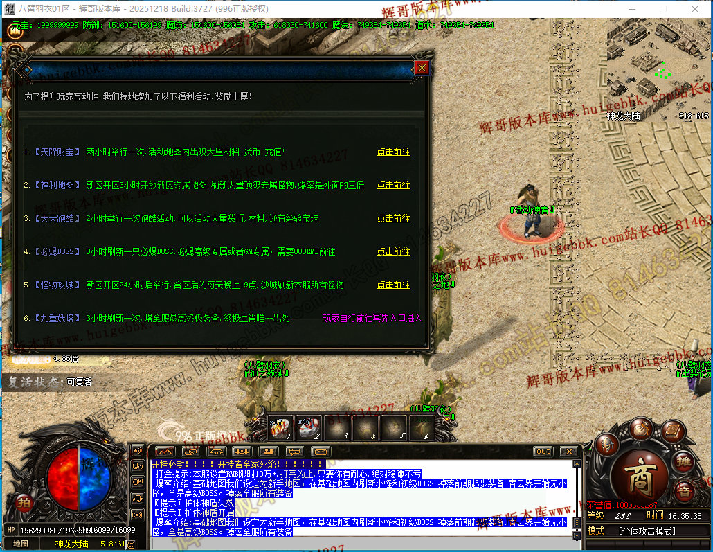 如果发现影响开区的大问题,可联系站长进行免费修复,细节问题自己处理不负责细节问题,