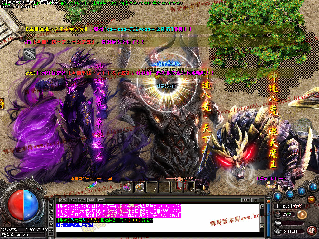 杀猫逐鹿出新村 斩妖除魔入盟重 近观绿涛汇碧海 远眺青山有苍松