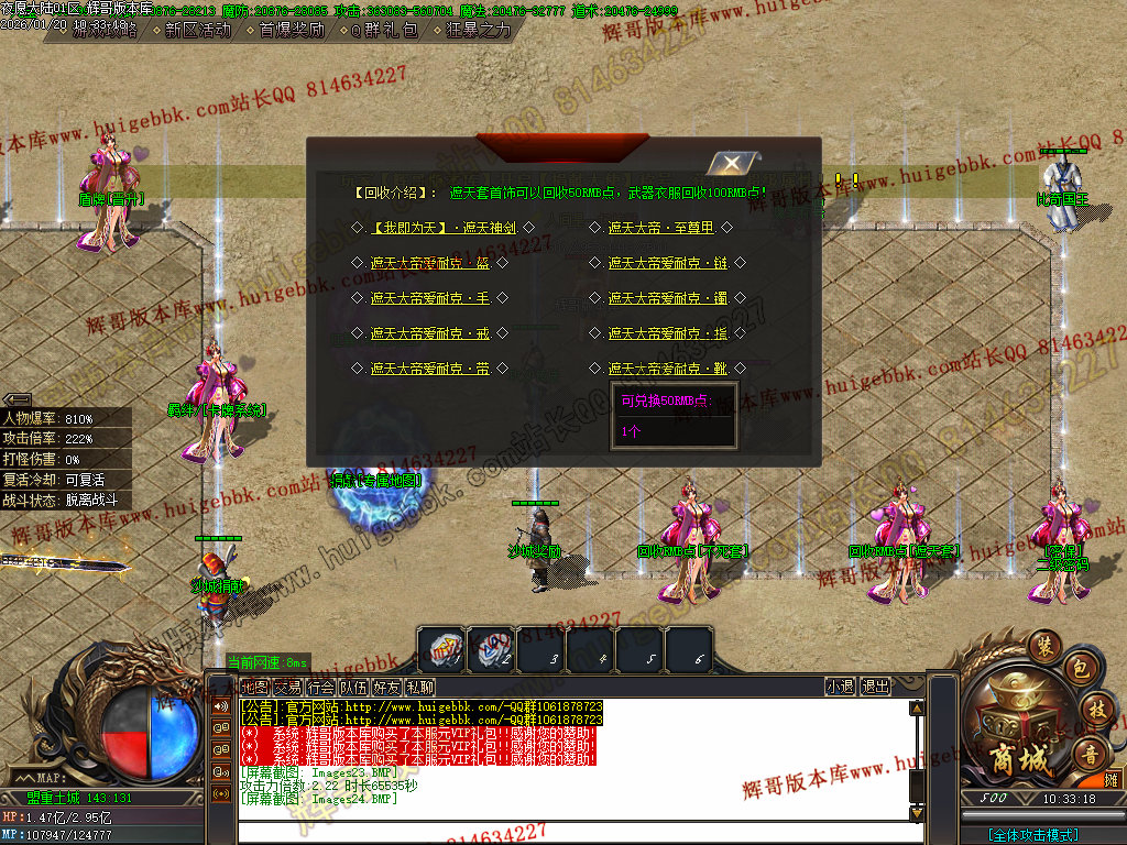 6.所有地图每小时刷新两只送财使者,杀死必爆10RMB点,活动BOSS,秘境统领,世界BOSS也是必爆RMB点!