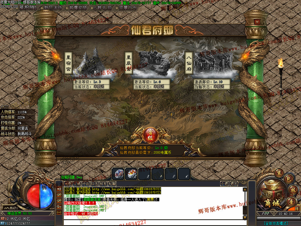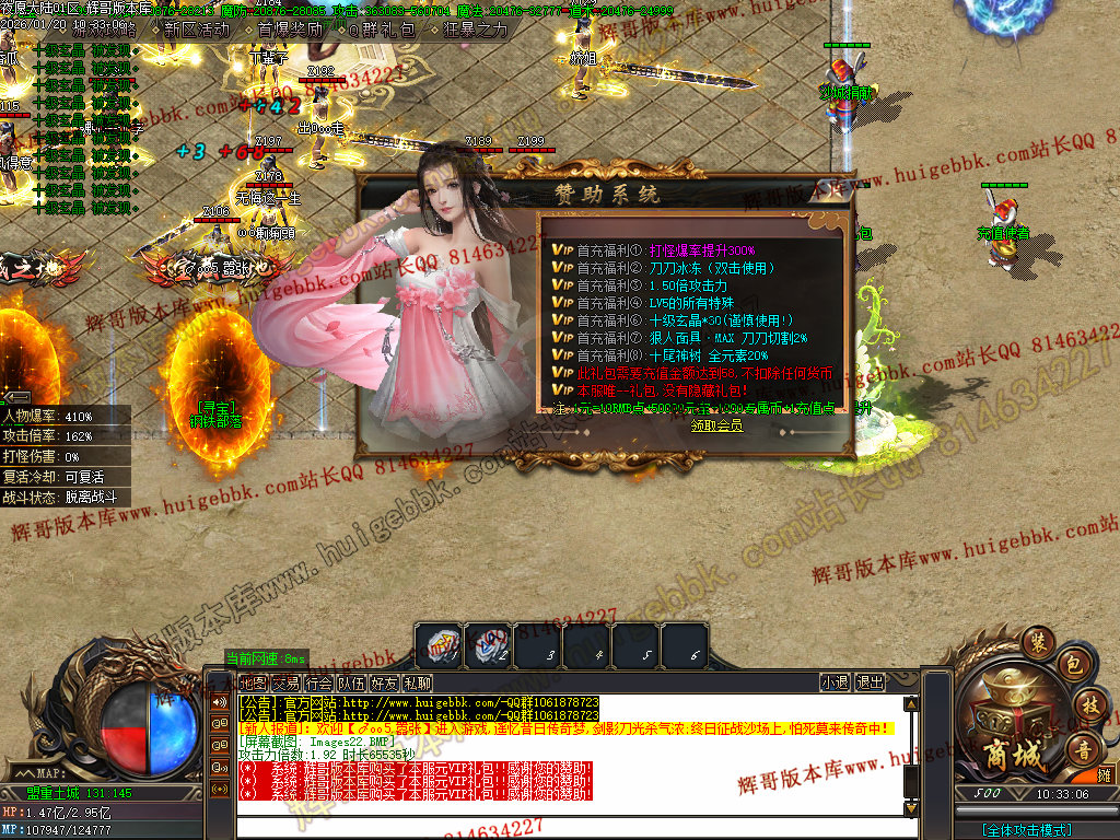1.本服4月7号进行了版本大更新,降低了一半消费,提高了专属币爆率,活动怪的RMB爆率,不论是散人还是小资玩家都非常好发育