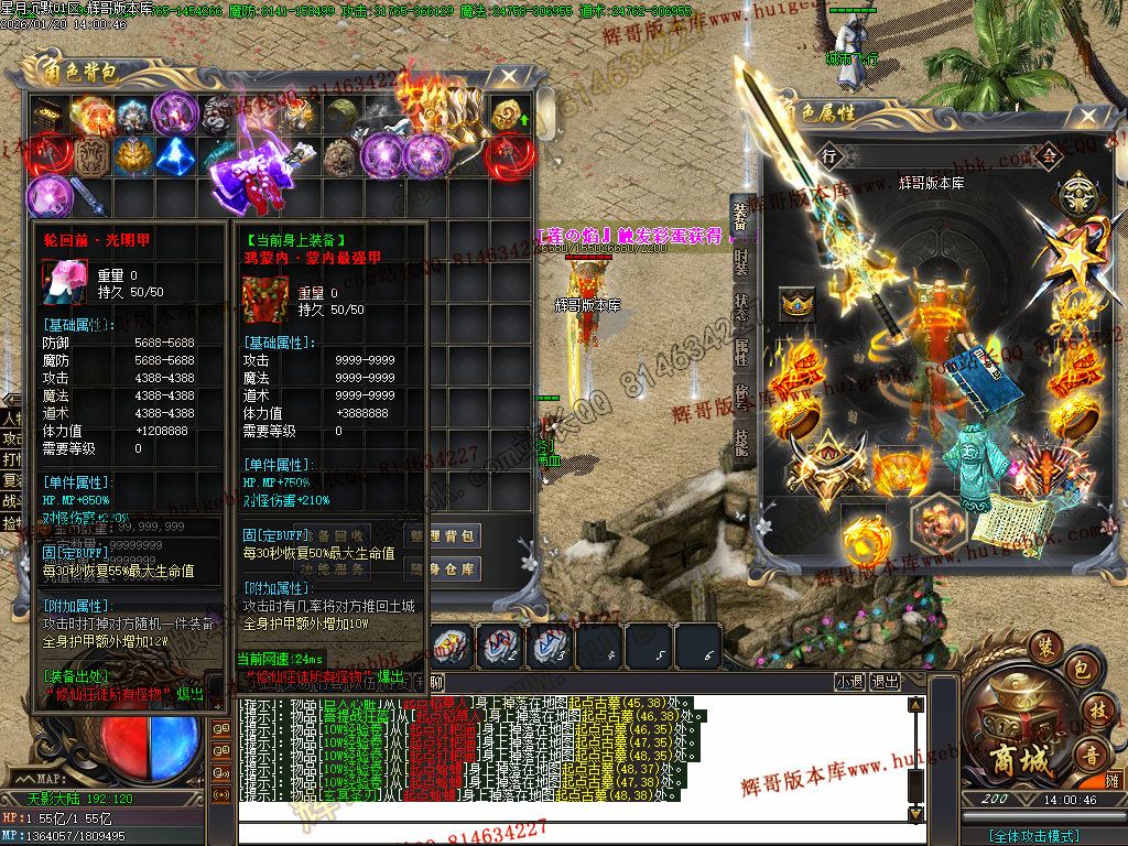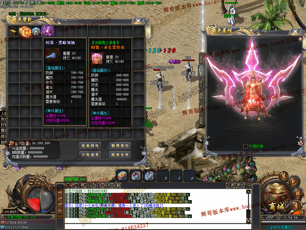 2.超级大礼包88充值点,赠送:时装·雪人披风,斗转星移lv.4 一代宗师称号 金币1500万 转生15转 群体施毒术 十步一杀 魔法盾