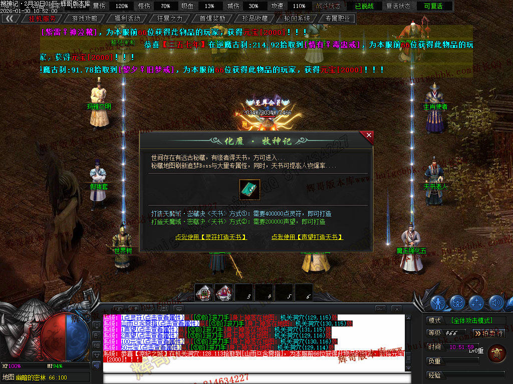 赠送 诛魔·十里狼烟称号卷- 攻击怪物附带,攻击伤害+400%·增幅对怪物伤害+140 总爆率6% 刀刀切割怪物10W血 任意怪)