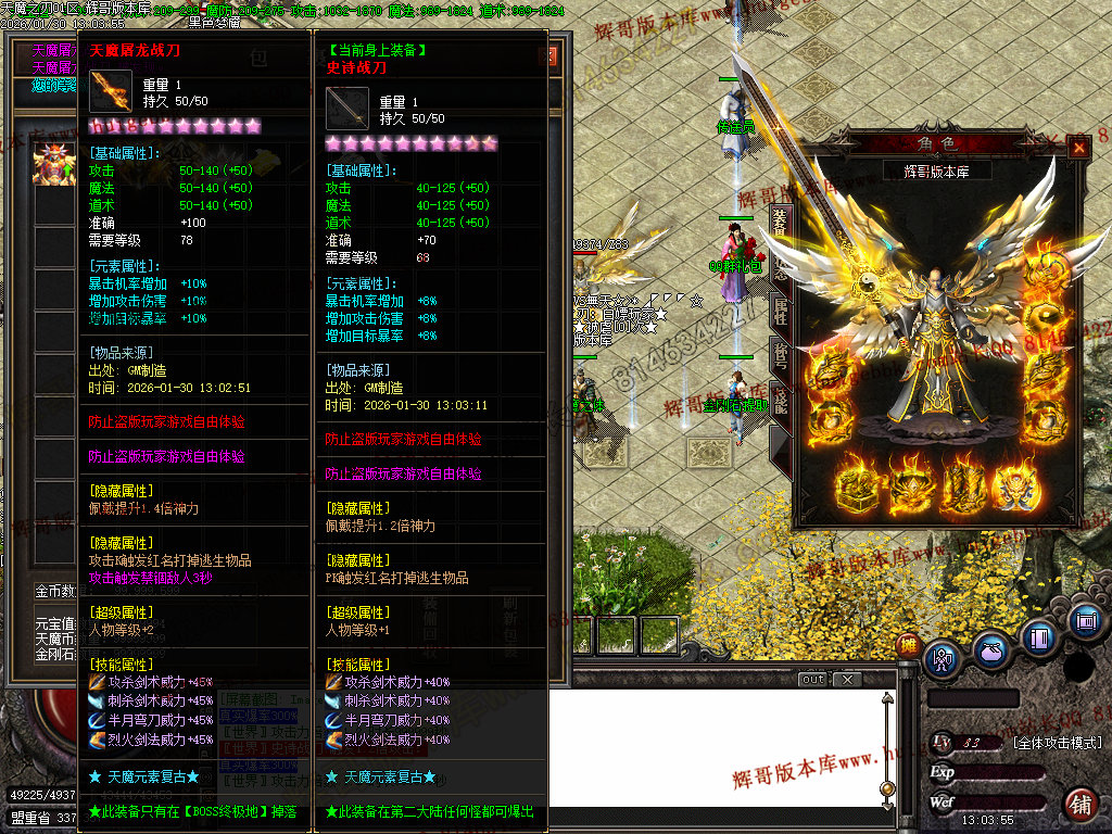 装备属性请查看土城左下终极装备展示,属性强悍!更多游戏细节不明白找客服咨询!