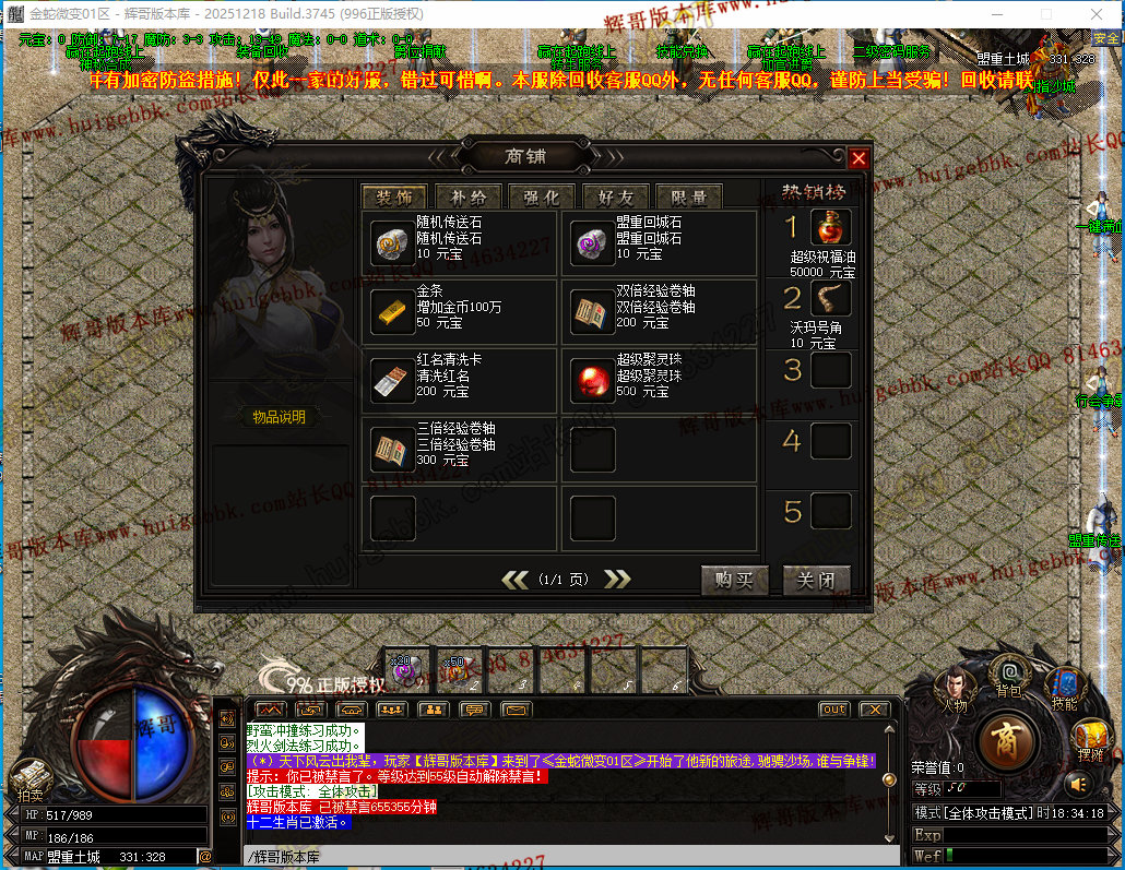 如果发现影响开区的大问题,可联系站长进行免费修复,细节问题自己处理不负责细节问题,