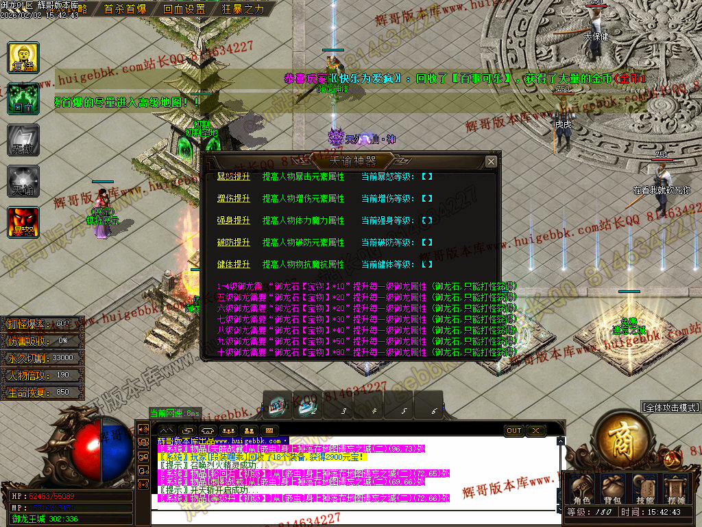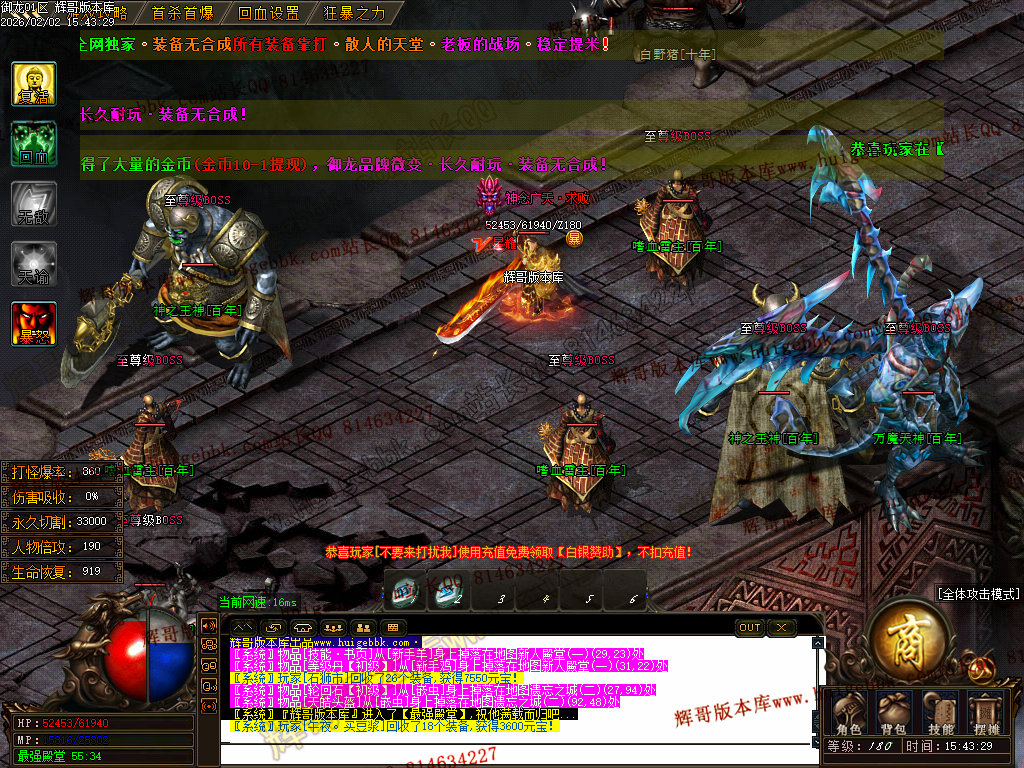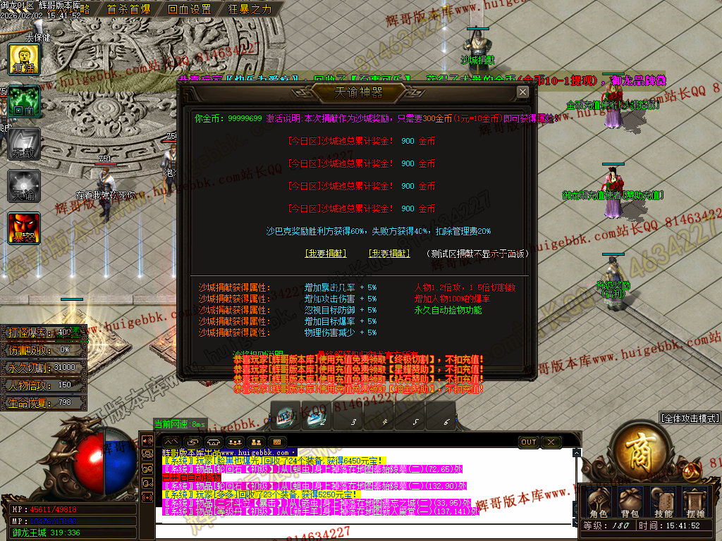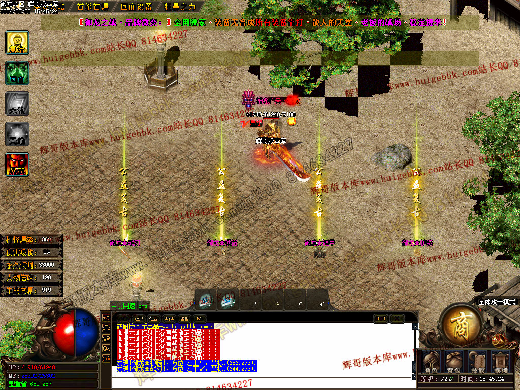 修复了终极装备 有一个属性 是群攻技能的 十字斩杀技能 原来是对人物触发.正常是对人物不触发.只对怪触发.