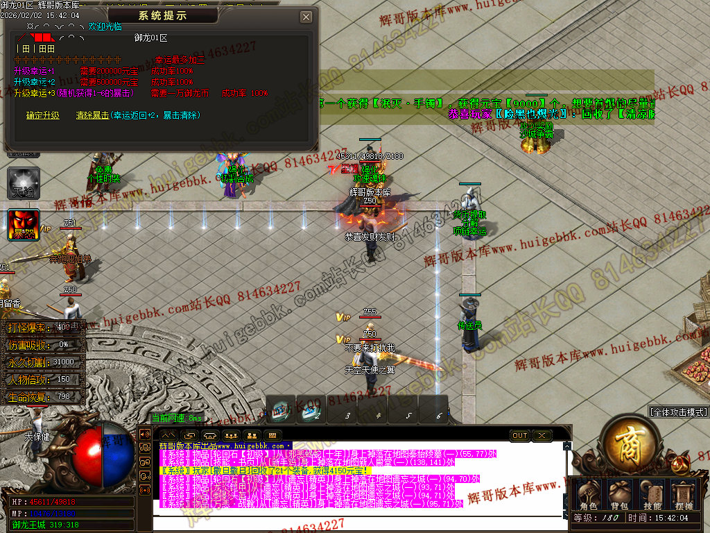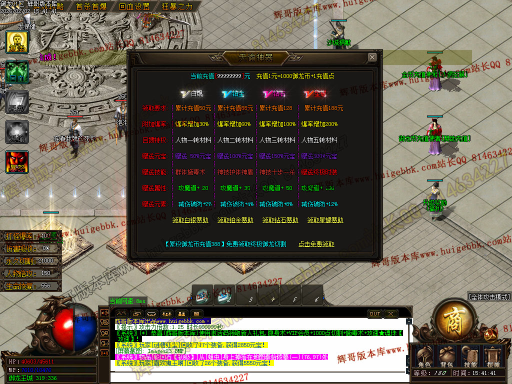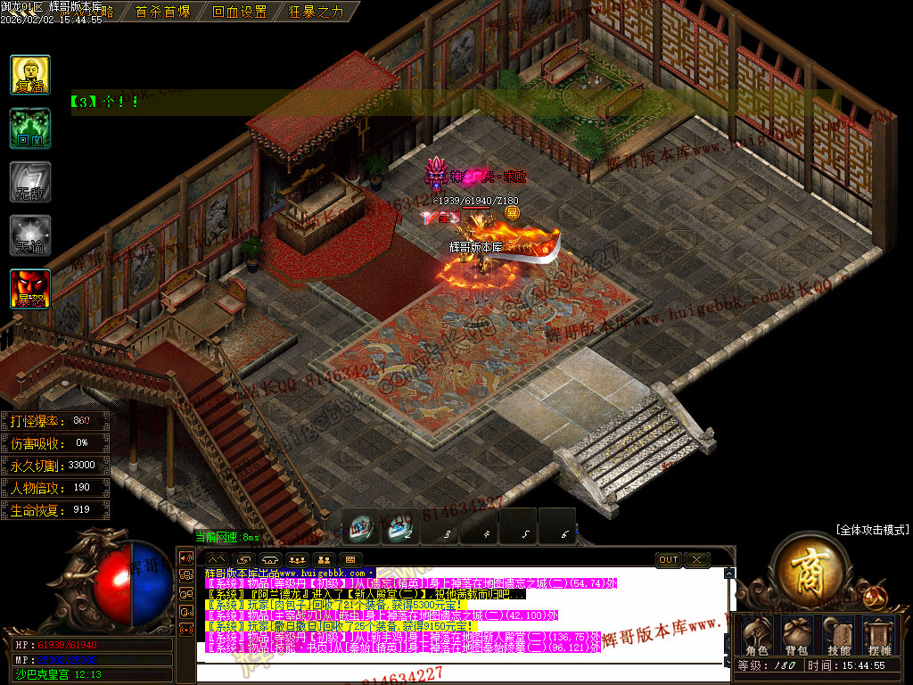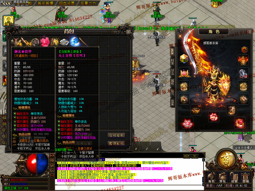 修复了终极装备 有一个属性 是群攻技能的 十字斩杀技能 原来是对人物触发.正常是对人物不触发.只对怪触发.