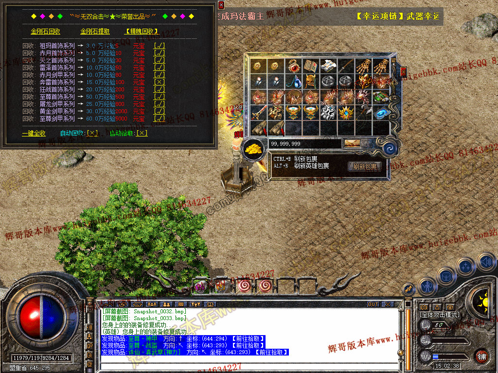 初级地图打祖玛装备、赤月装备、新衣服等、回收高额经验.