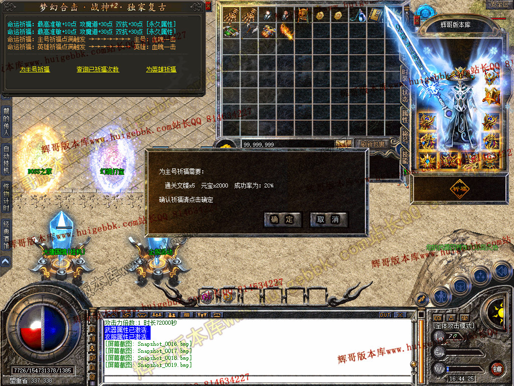 本服装备次序:祖玛-赤月-雷霆-强化-战神-星王-君王 魔龙教主爆一切!!!
