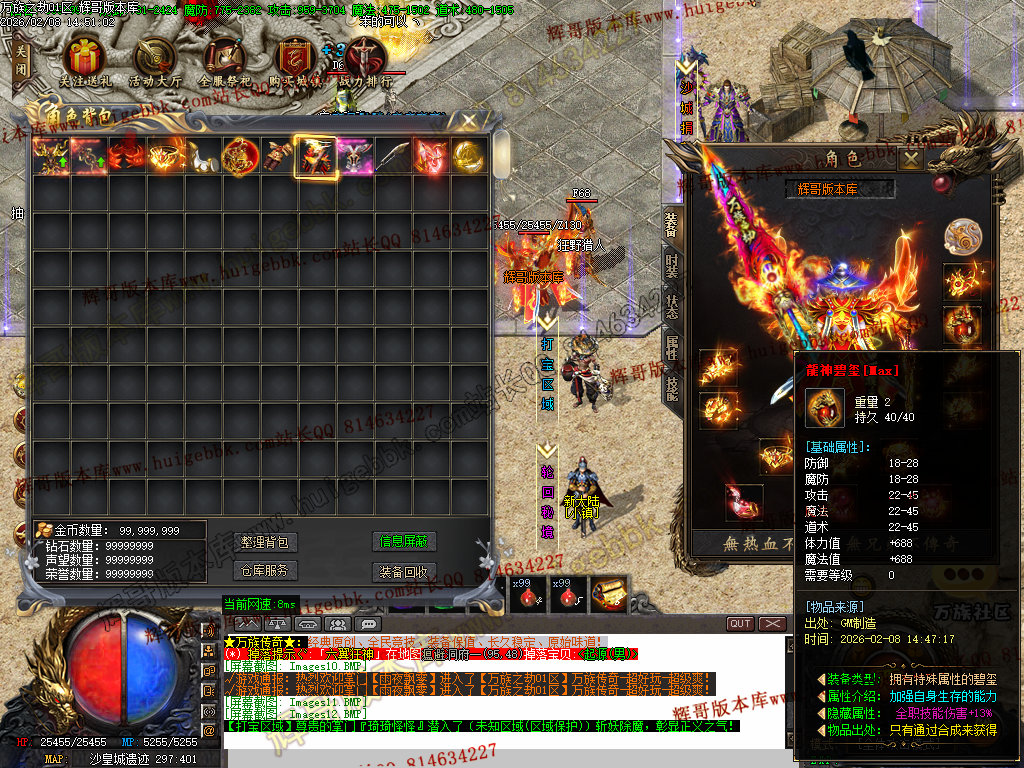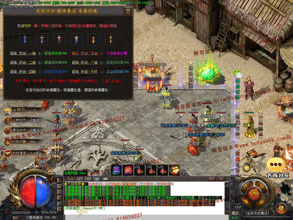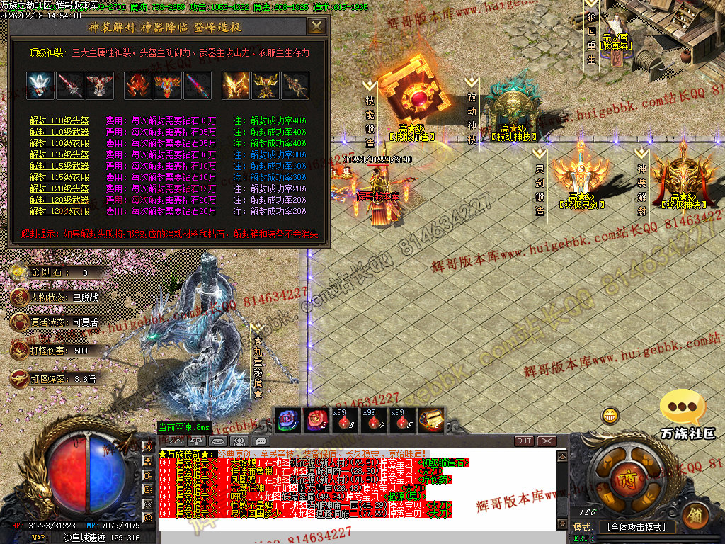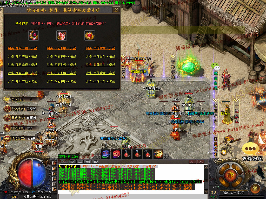 沙皇城最左方:轮回重生、等级锻造、怪物扫荡、万能服务、等功能及服务!