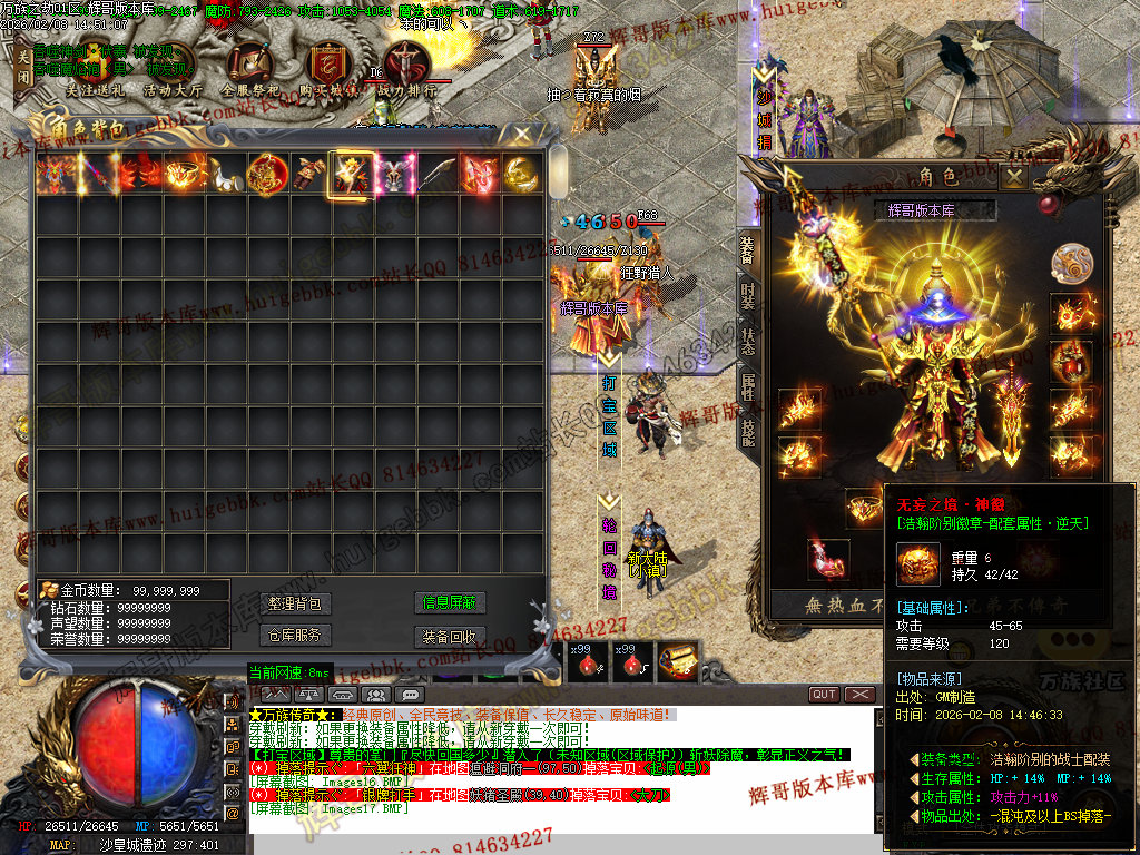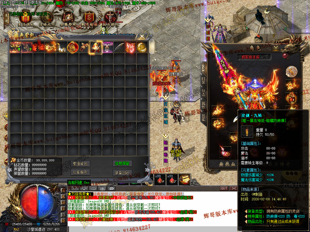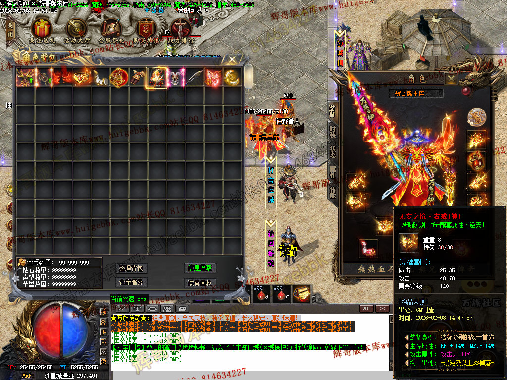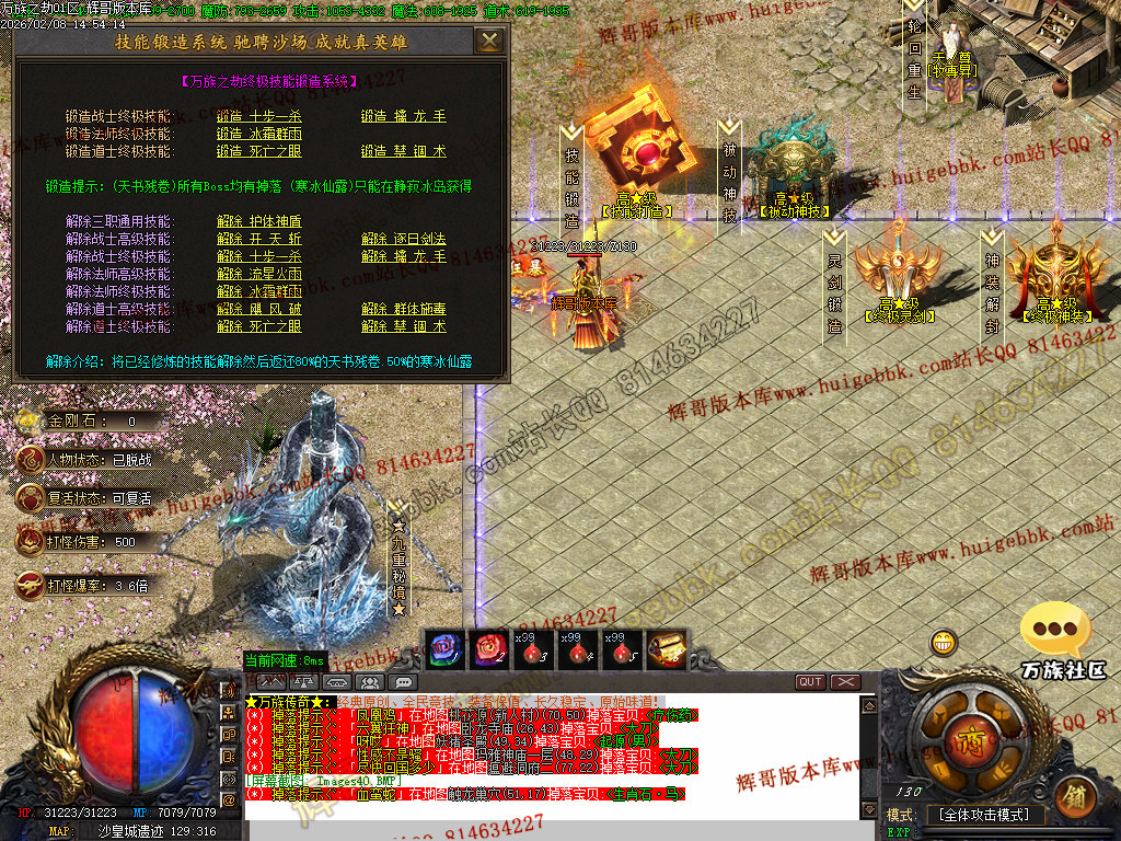沙皇城最左方:轮回重生、等级锻造、怪物扫荡、万能服务、等功能及服务!