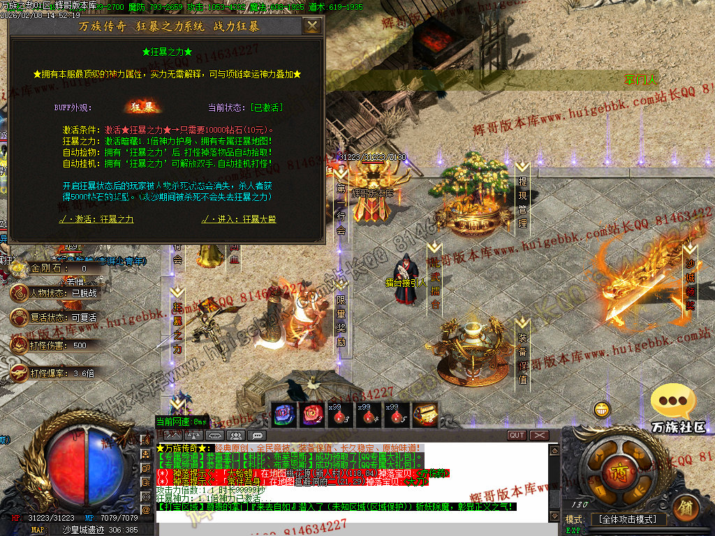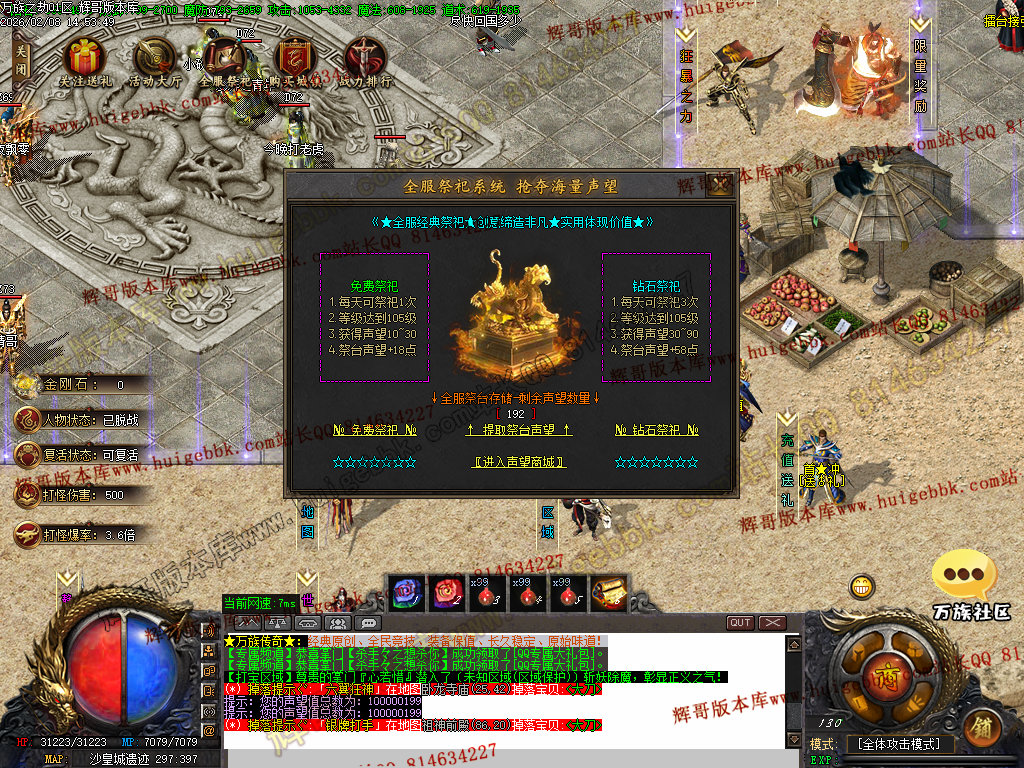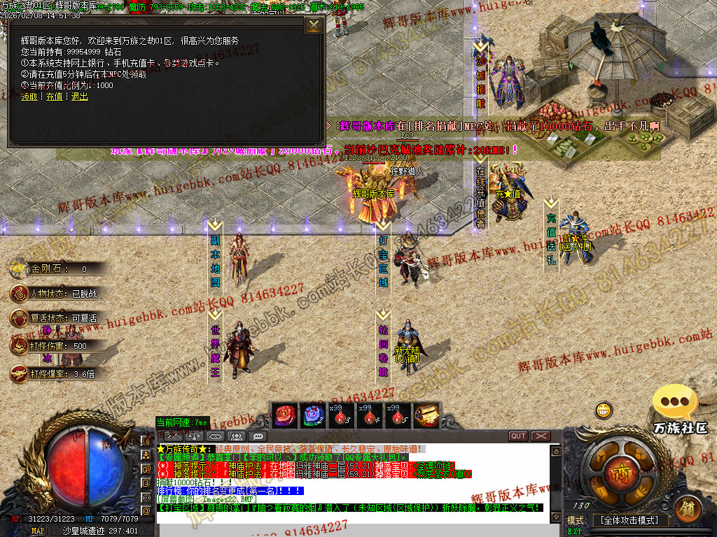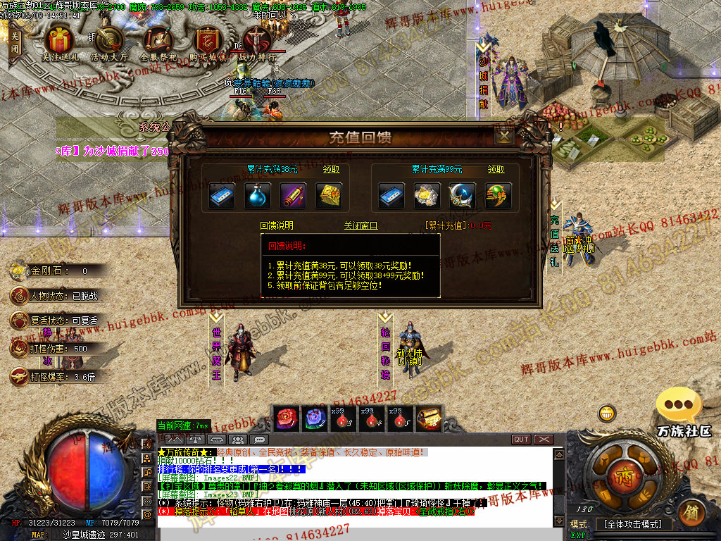 沙皇城最右方:奖励、行会、捐献、狂暴、限量、保值、提现、等综合功能!