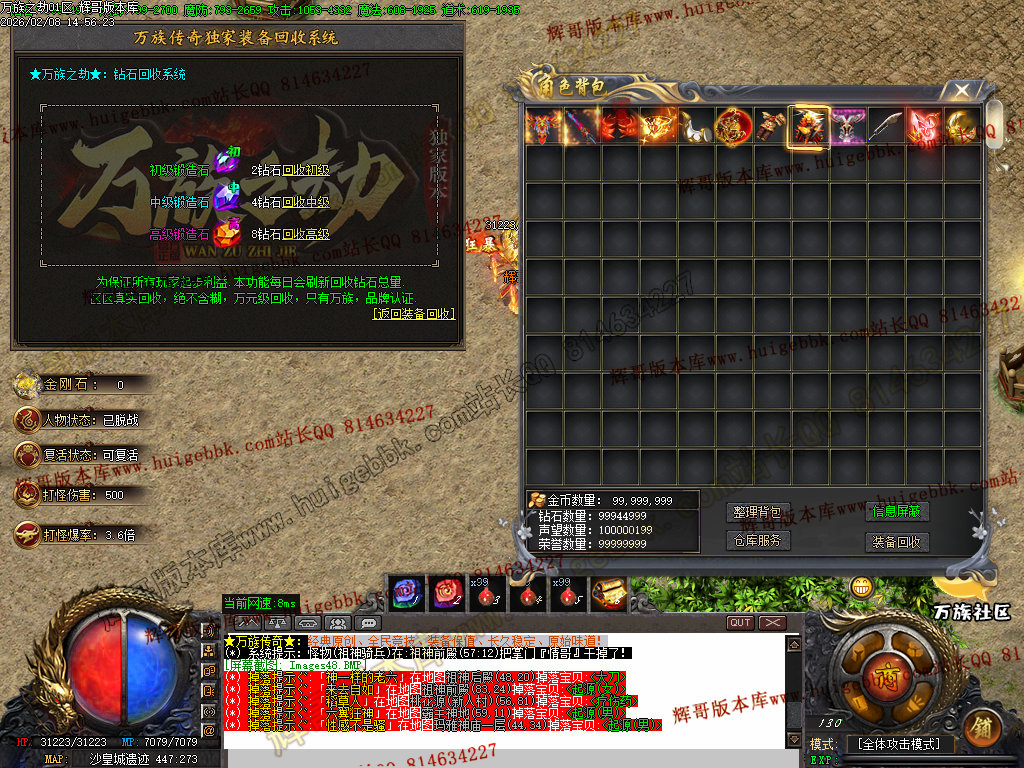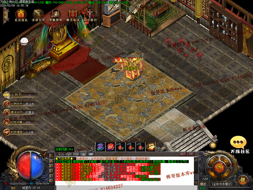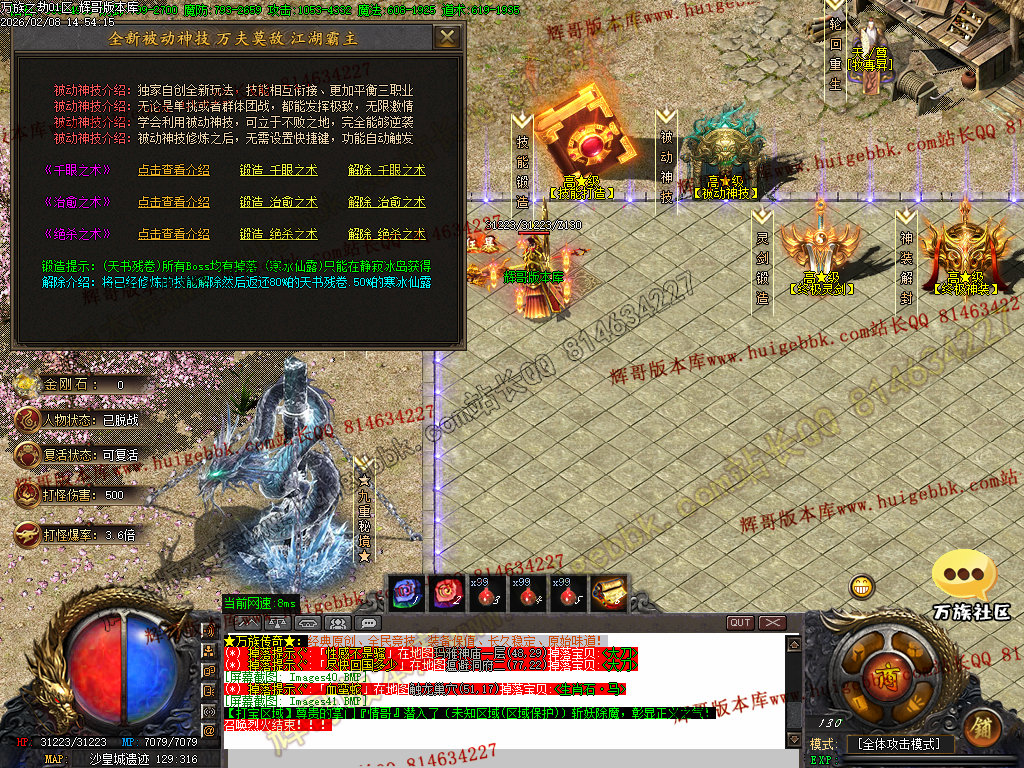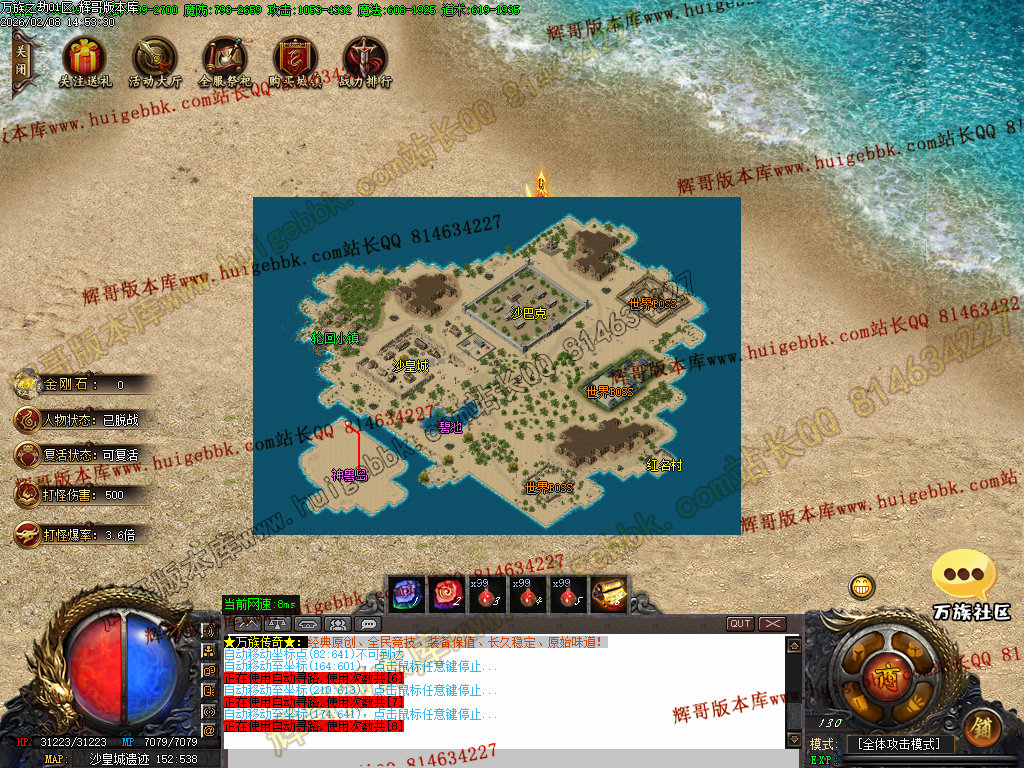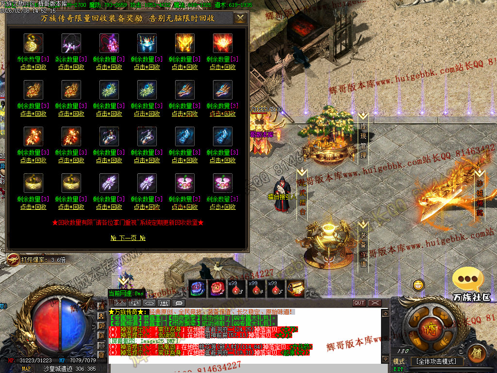 沙皇城最右方:奖励、行会、捐献、狂暴、限量、保值、提现、等综合功能!