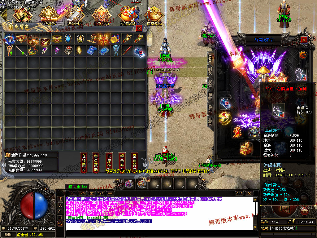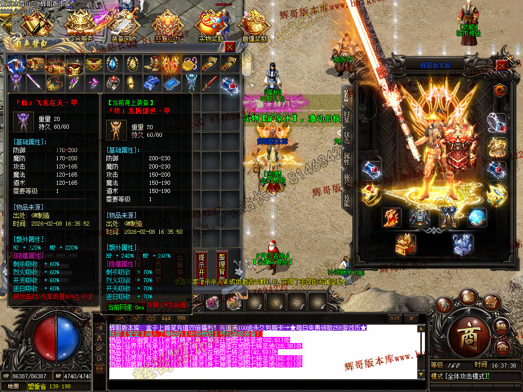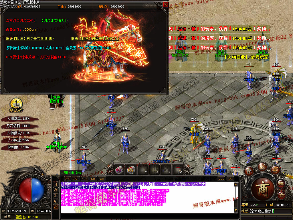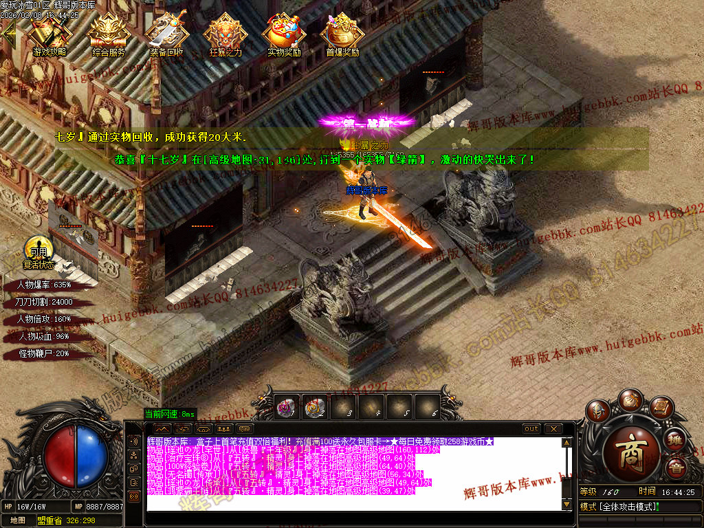独家同步盛大技能、装备全爆、长期稳定、散人最后净土