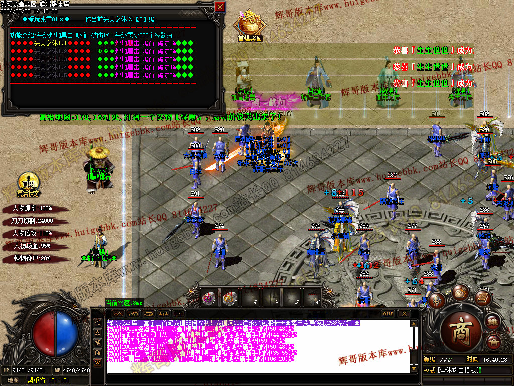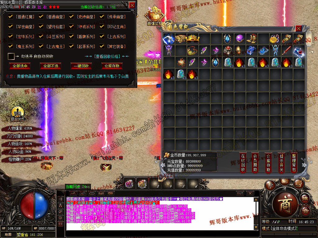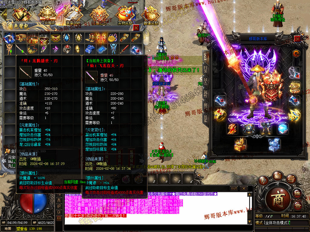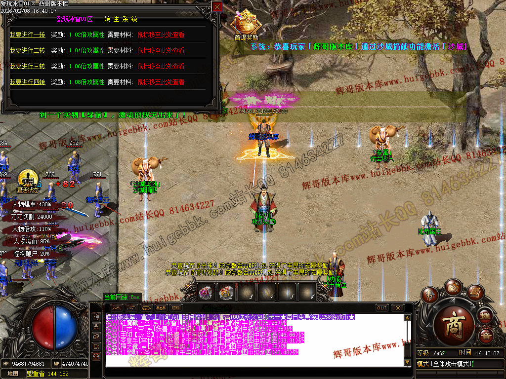 独家同步盛大技能、装备全爆、长期稳定、散人最后净土