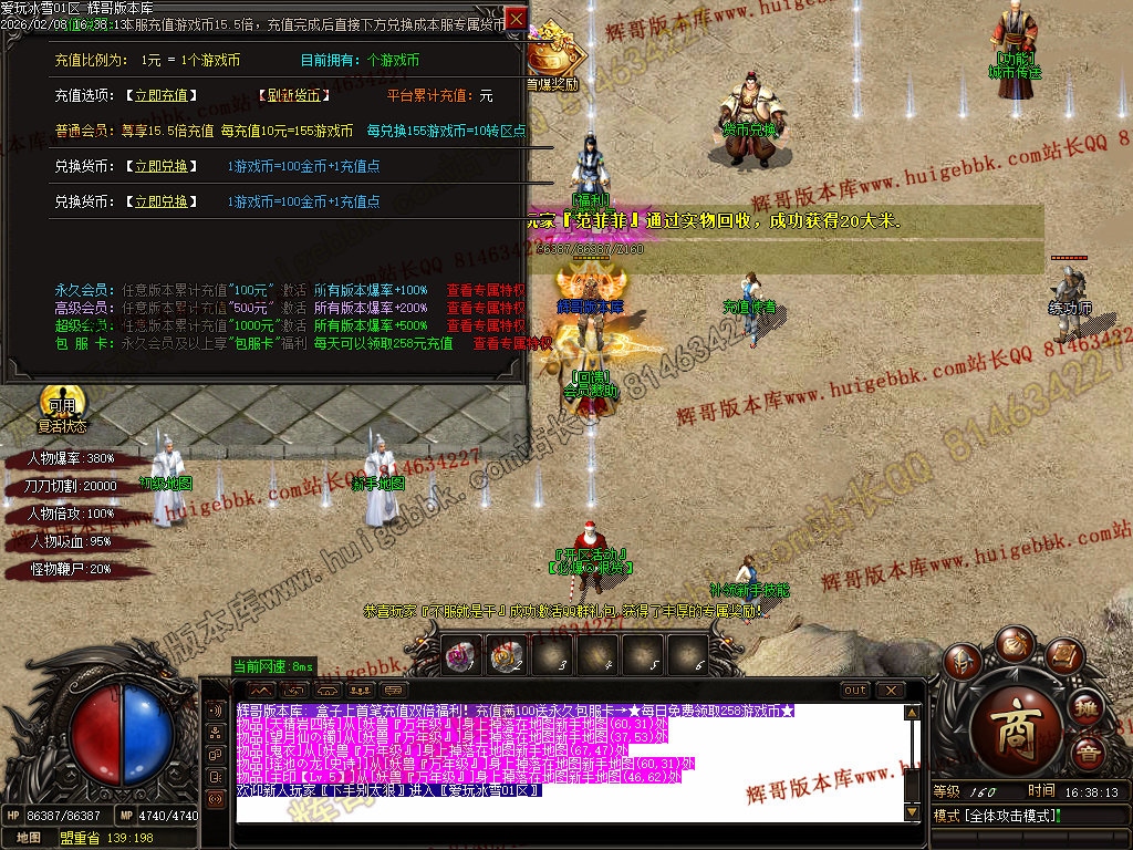 本服充值比例1元=100金币,终极首饰保底回收万金