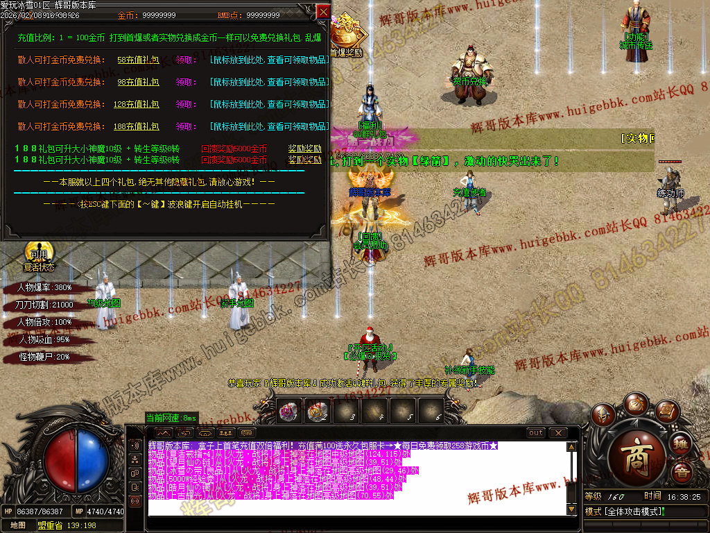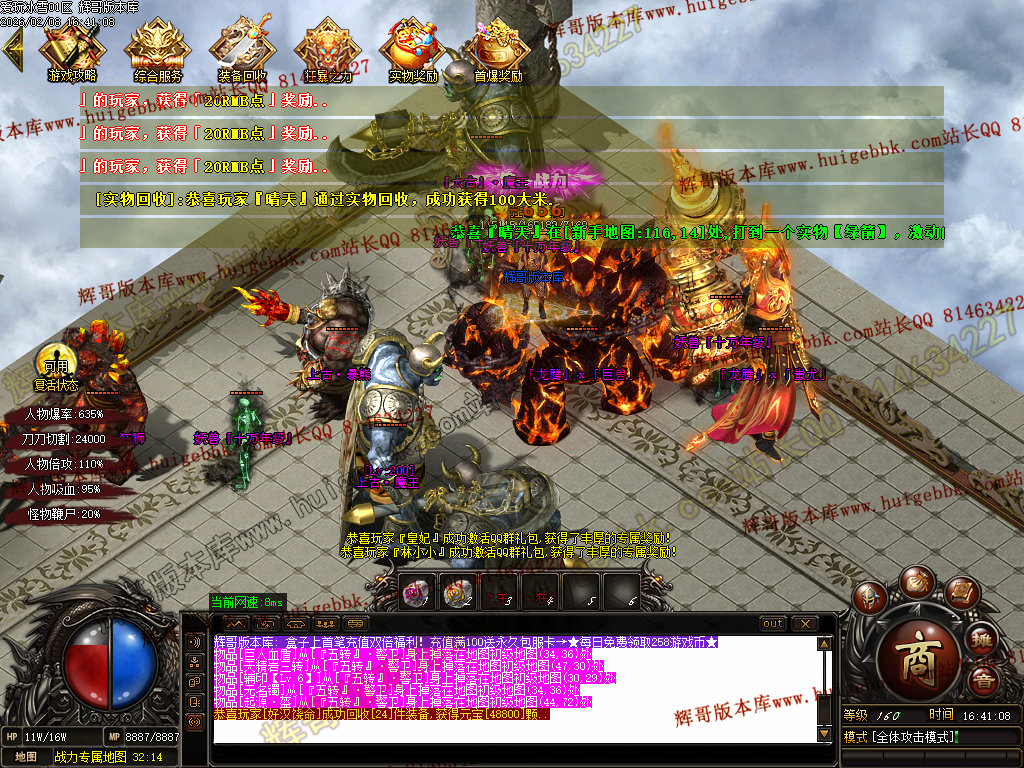 88礼包:三宝材料,元宝,经验卷,鬼王,大小神魔,刀刀切割