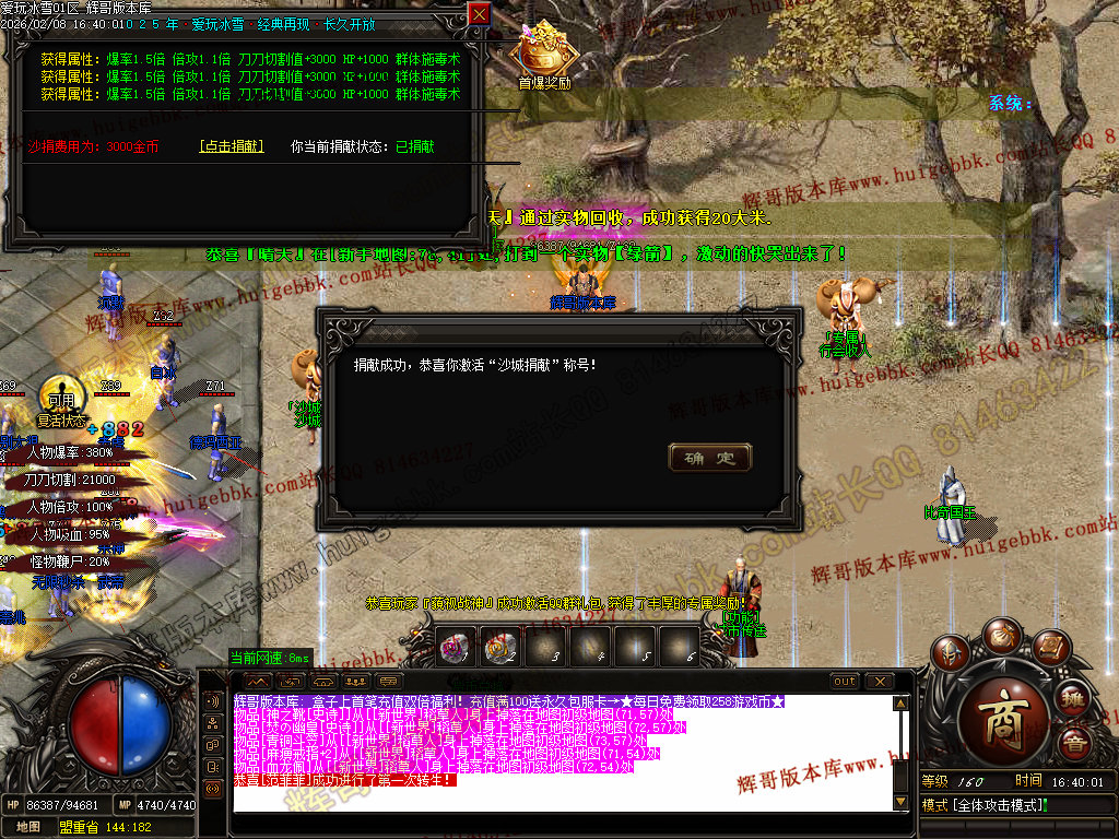 30沙捐: 可获得爆率+50,刀刀切割+2000,1.1倍攻击,群体施毒术