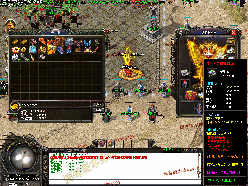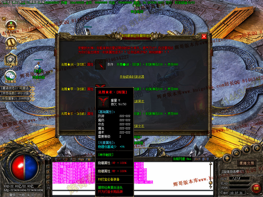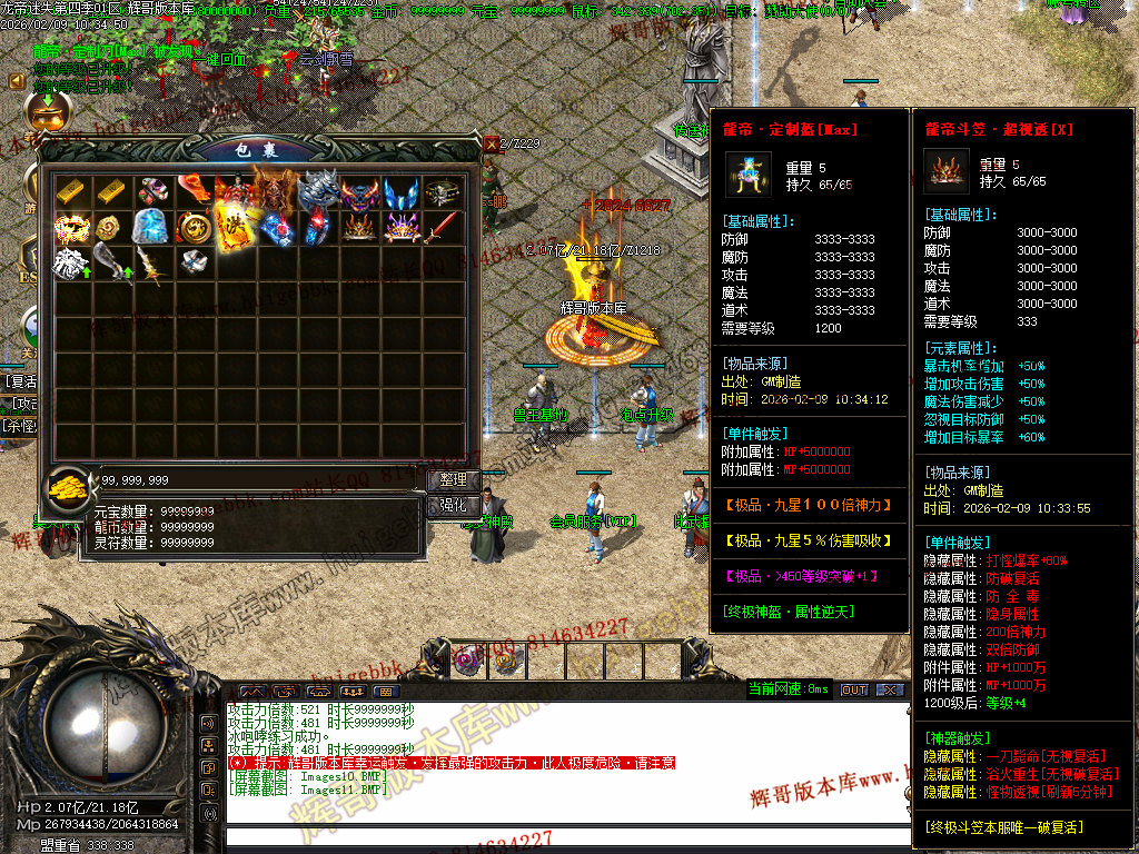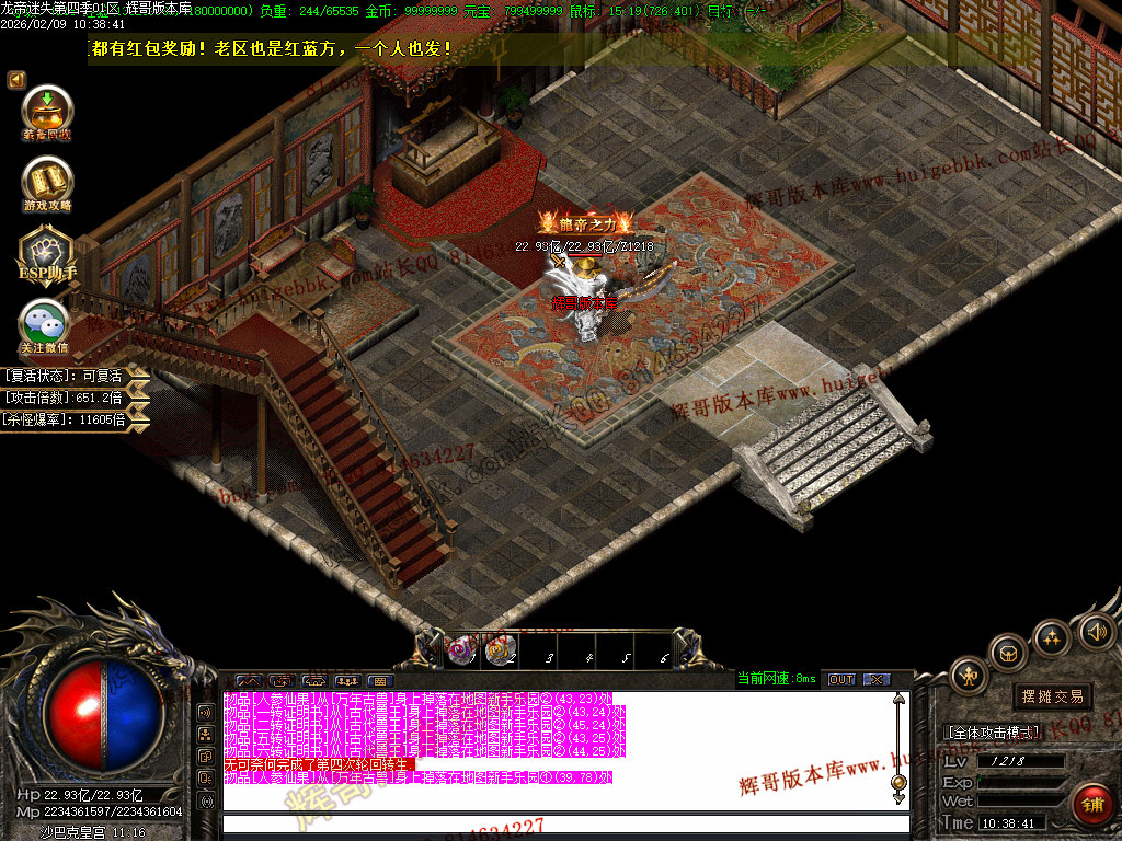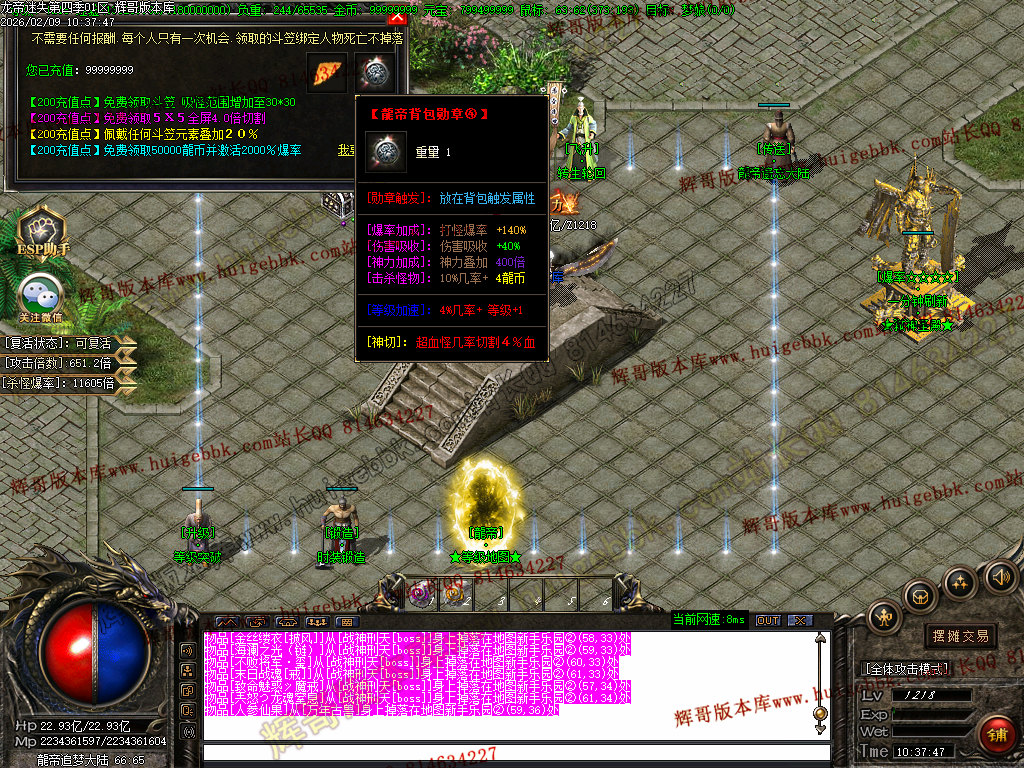 200元充值: 1、吸怪范围增加至30*30 2、5X5全屏4.0倍切割 3、领取50000龍币并激活2000%爆率 4、领取次终极绑定斗笠等级+2 5、领取【龍帝背包勋章④】四级背包神器