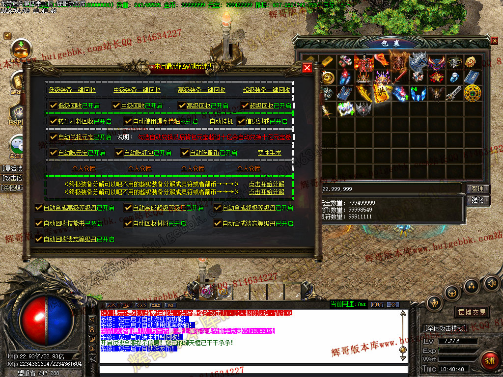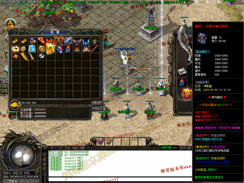 400元充值: 1、吸怪范围增加至40*40 2、7X7全屏6.0倍切割 3、领取100000龍币并激活5000%爆率 4、领取终极绑定斗笠等级+3 5、领取【龍帝背包勋章⑥】六级背包神器 6、鉴定BUFF保底五条攻击1000-2000