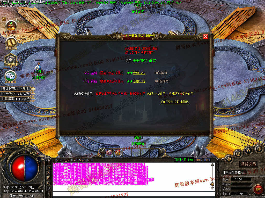 【注意事项】:转生奖励十转的勋章一定要领取,游戏不爆勋章,带上打怪自动升级成终极勋章!