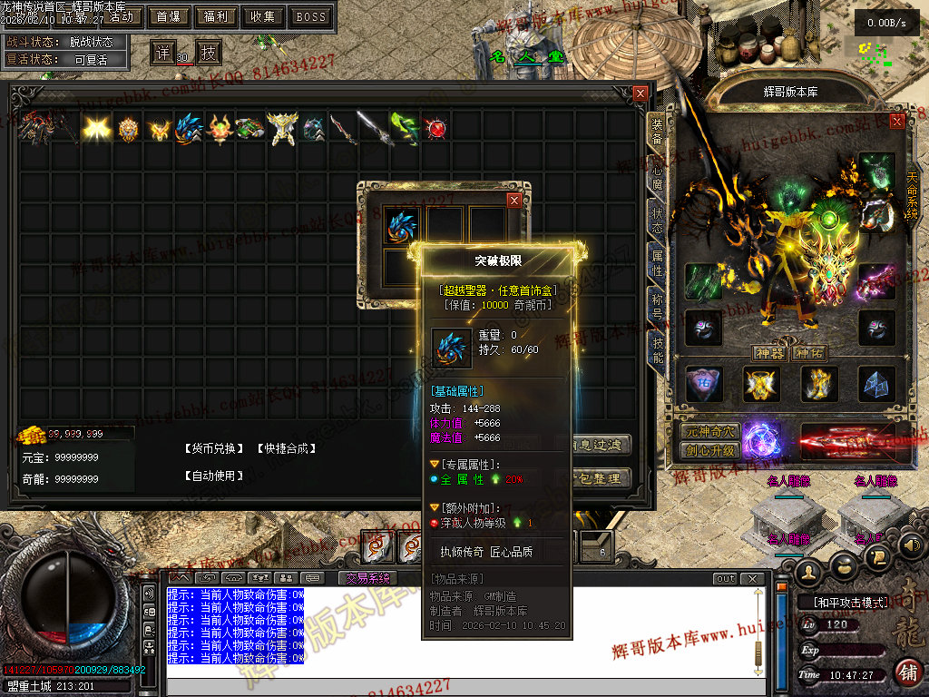 注意:本服后期属性90% 来源于装备附加,所以只需看脸!一切靠打!人人可满!