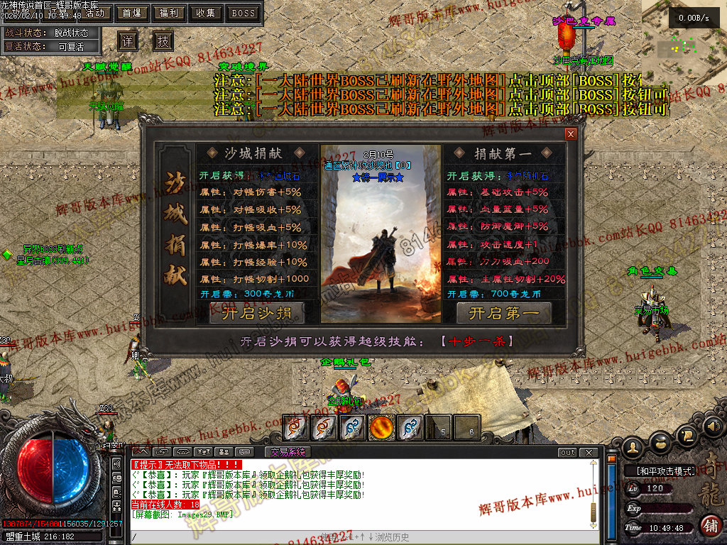 充值30米龍币,开启沙城捐献第一 → ★★★★ 怪物切割+吸血+攻速+血量+十步一杀 ★★★★