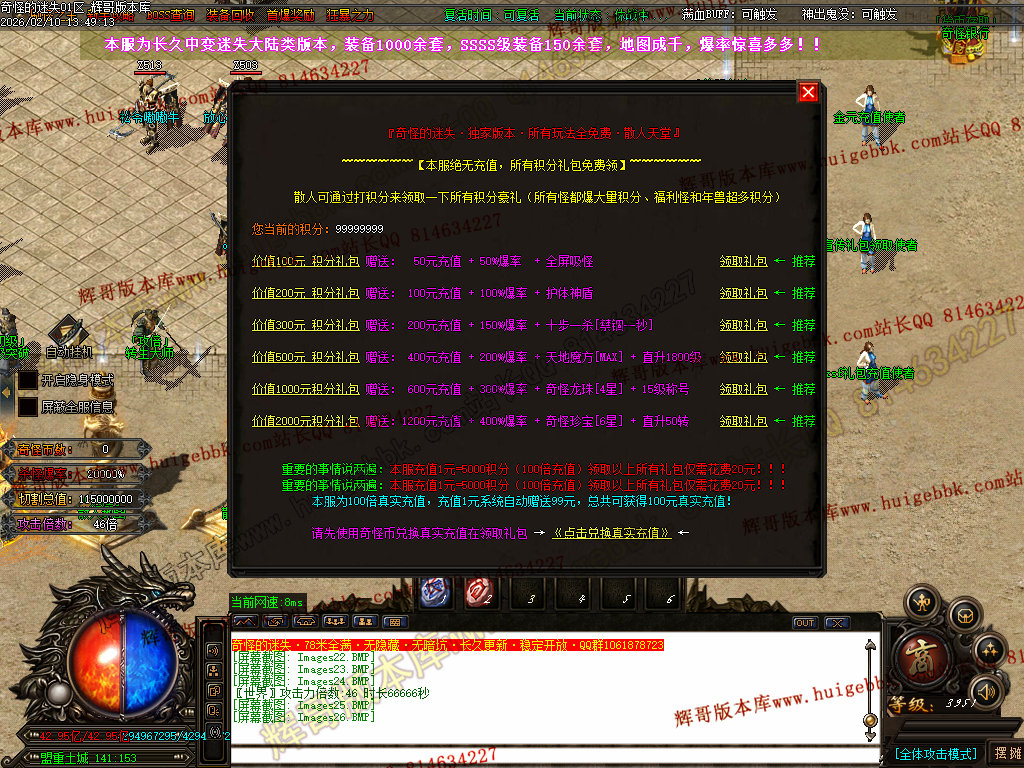 (充值比例] :1元=500奇怪币-5000具充积分+5亿元宝,具实百倍充值;