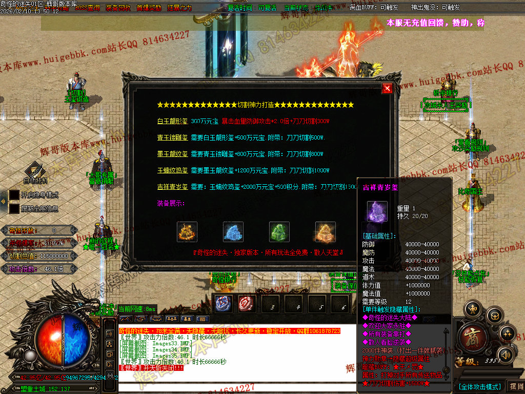 [版本特色] :所有爆率全看脸,散人小资无限追梦,所有地图都能爆终极