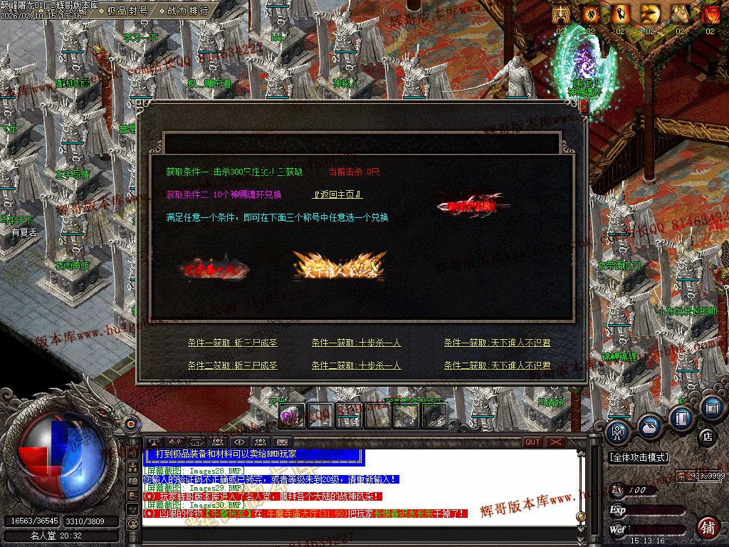 章系列三个在土城332 320三圣锻造NPC处锻造(具体查看此NPC)(所有5000以上血量怪物都有几率爆封魔勋章)