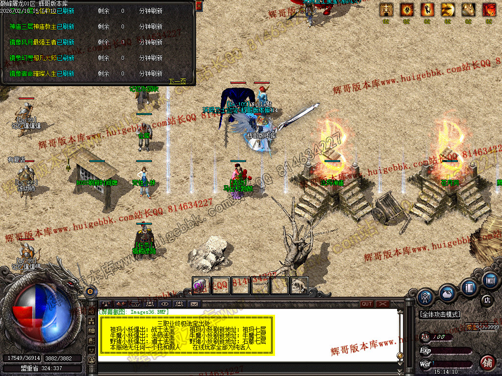 比奇、苍月、封魔、白日门野外都会在野外刷新一只超级BOSS,爆出所有装备、物品方便散人打宝!令外很多BOSS还直接爆金条,