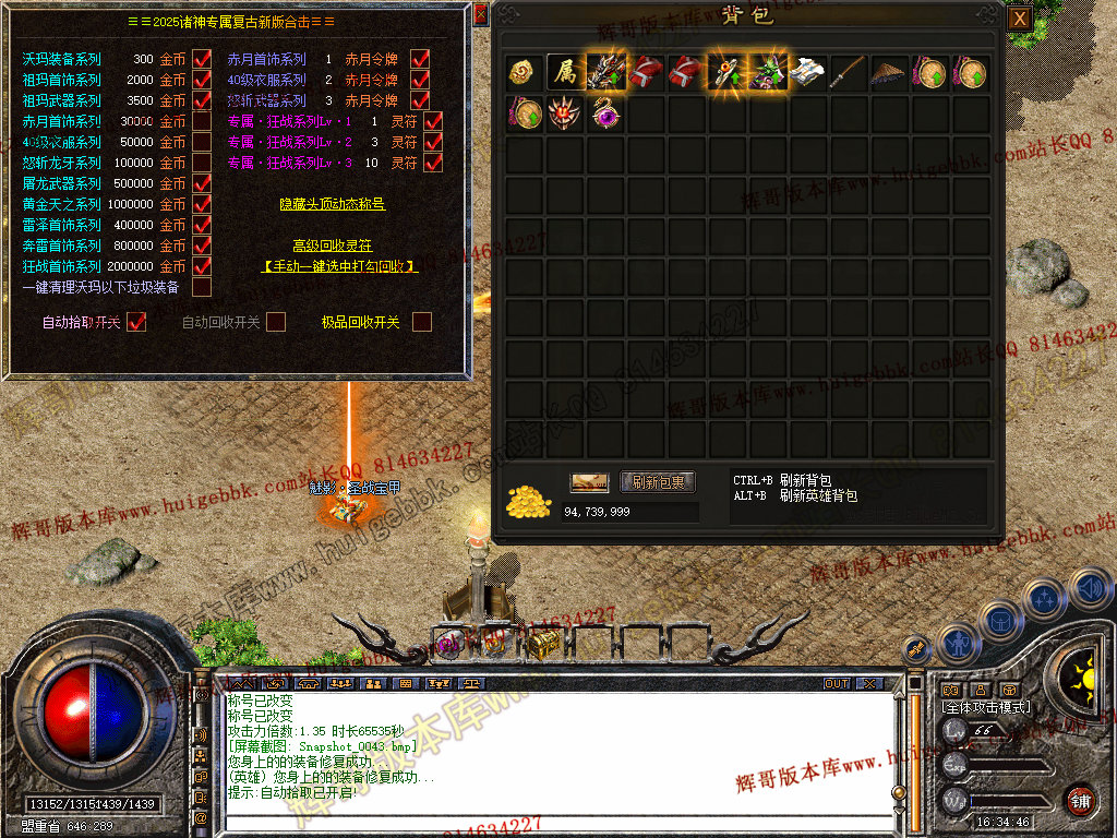 本服装备不变态:沃玛-祖玛-赤月-雷泽-奔雷-狂战,各地图均有boss