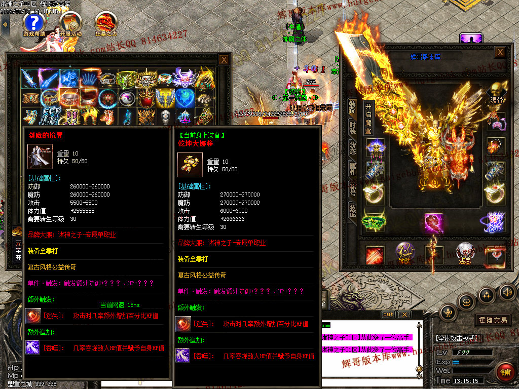 7:本服套装属性很强大!必须要弄套装,套装属性翻倍及吸血属性!越级打怪的必须条件之一