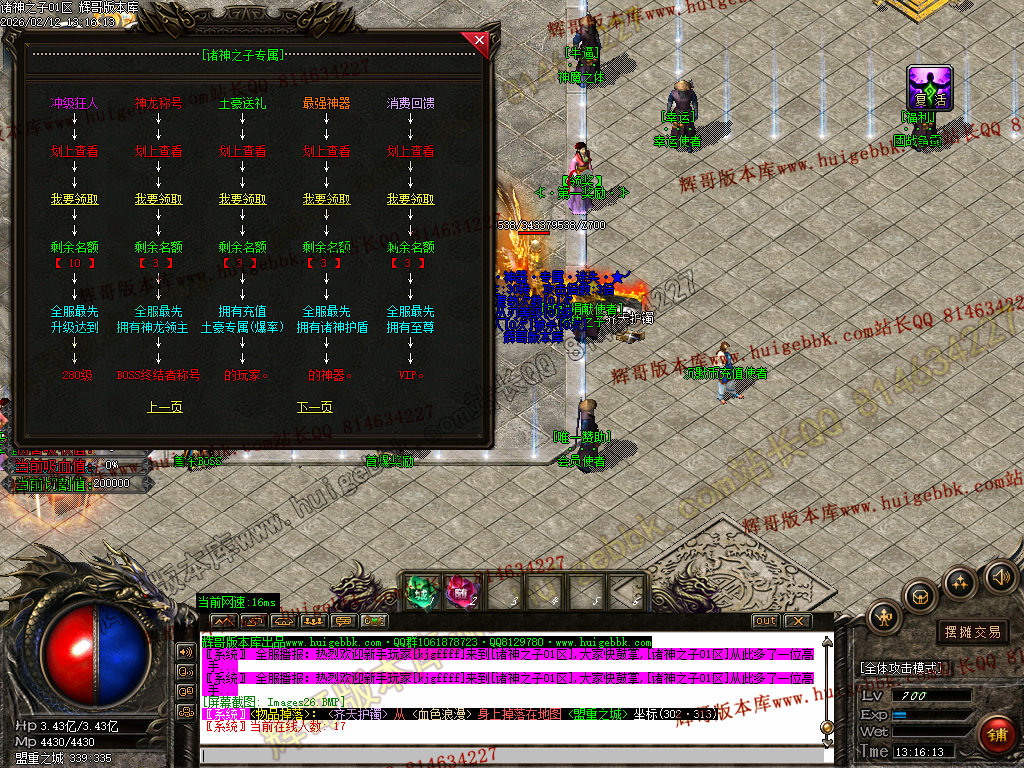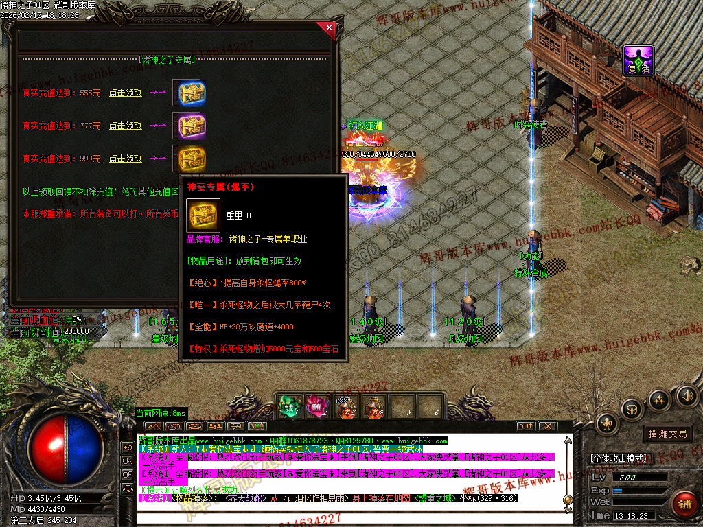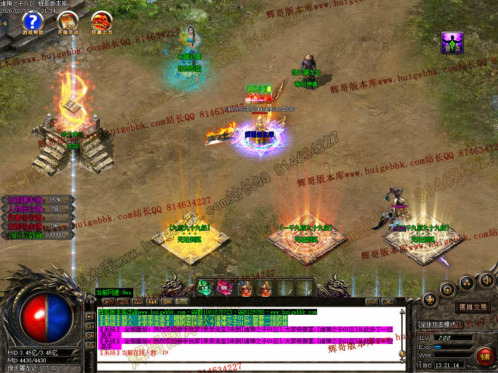 1:本服领QQ群礼包可获得施毒术、逐日和开天斩等,真正做到不花钱上线就能撸死所有BOSS-