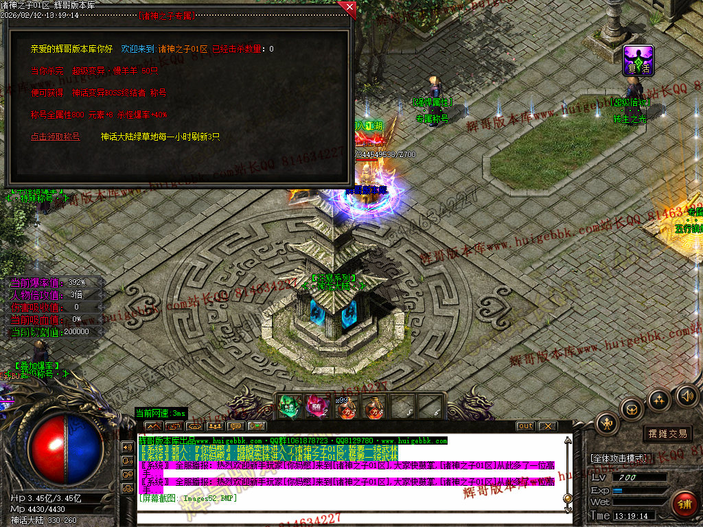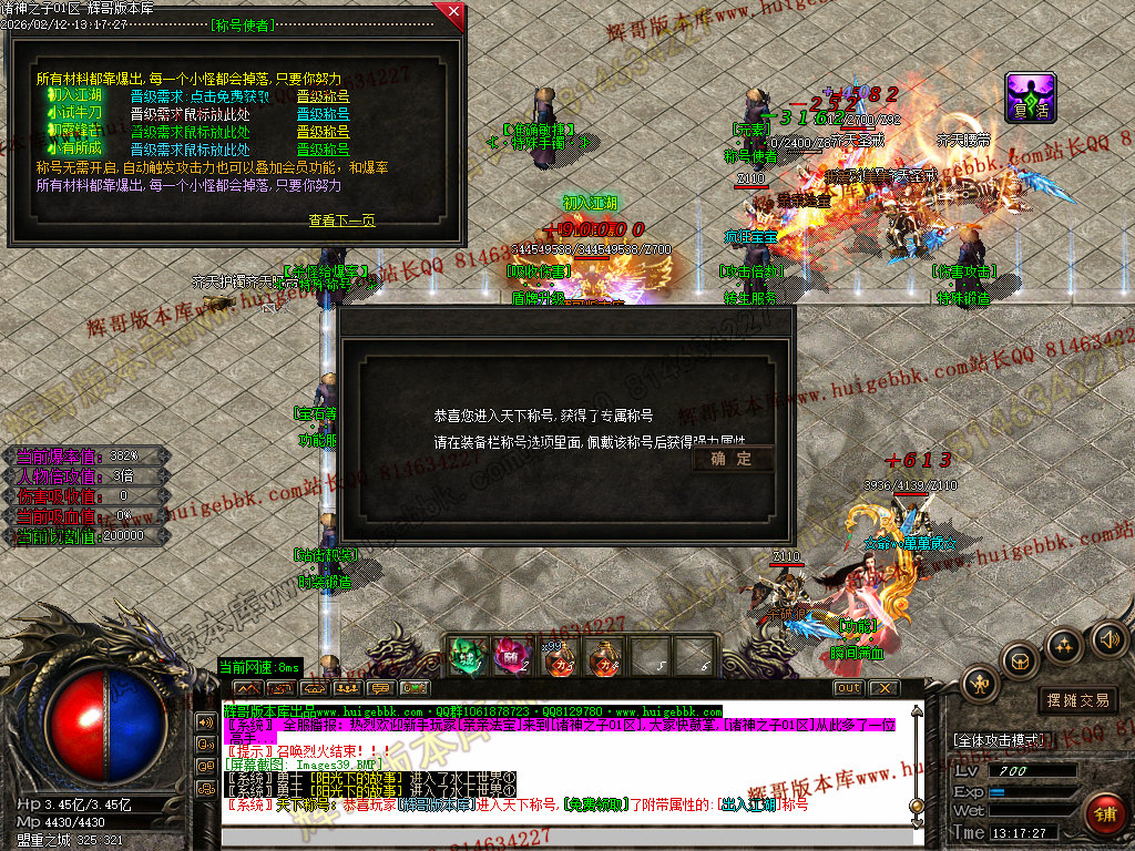 3、超级称号篇:神话之魂可以领取 赠送50%爆率+强悍属性元素(称号增加你的爆率)
