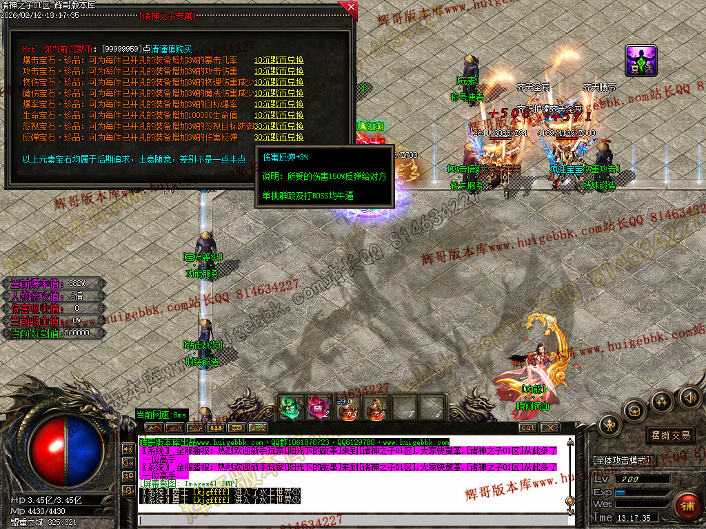 捐献使者:50%杀怪真实爆率、刀刀麻痹、刀刀切割Lv200以下的怪物1%最大血量、专属打宝地图(刷新全服顶级BOSS)