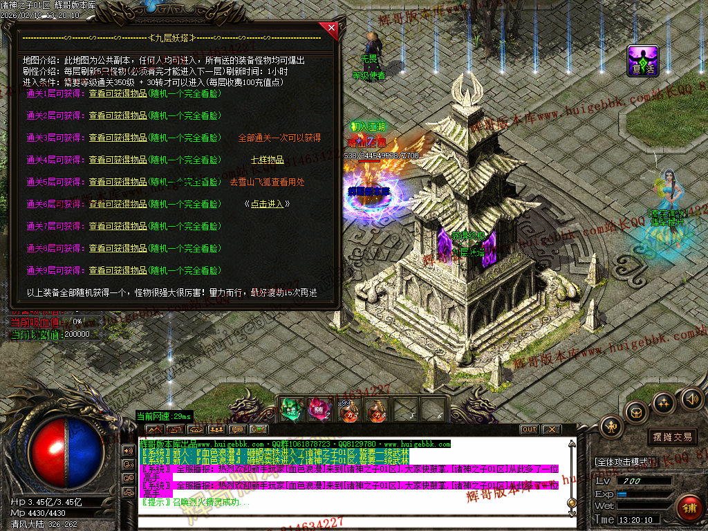 九层妖塔:每一层闯关便能随机获得-件很牛逼的神器,运气好的话直接获得本命神器,土豪必备,散人可在清风大陆打怪爆出,一切均可爆: