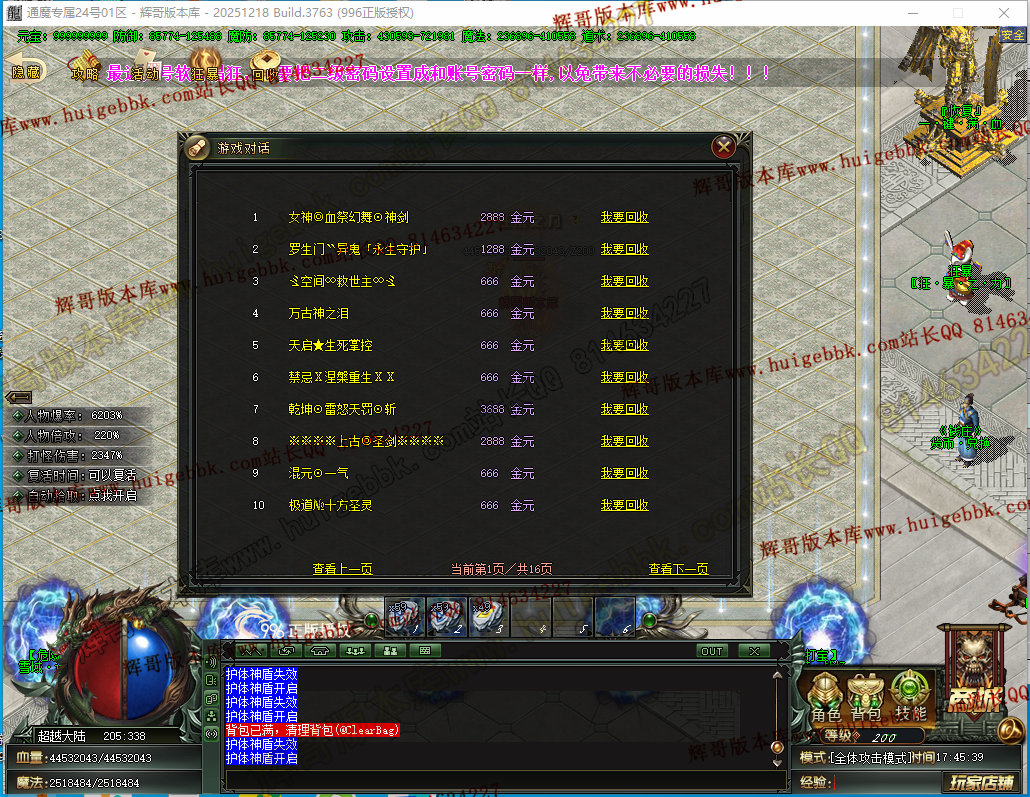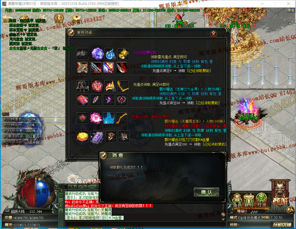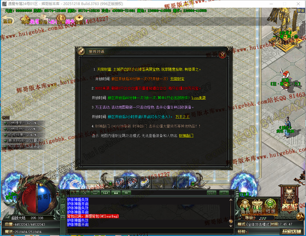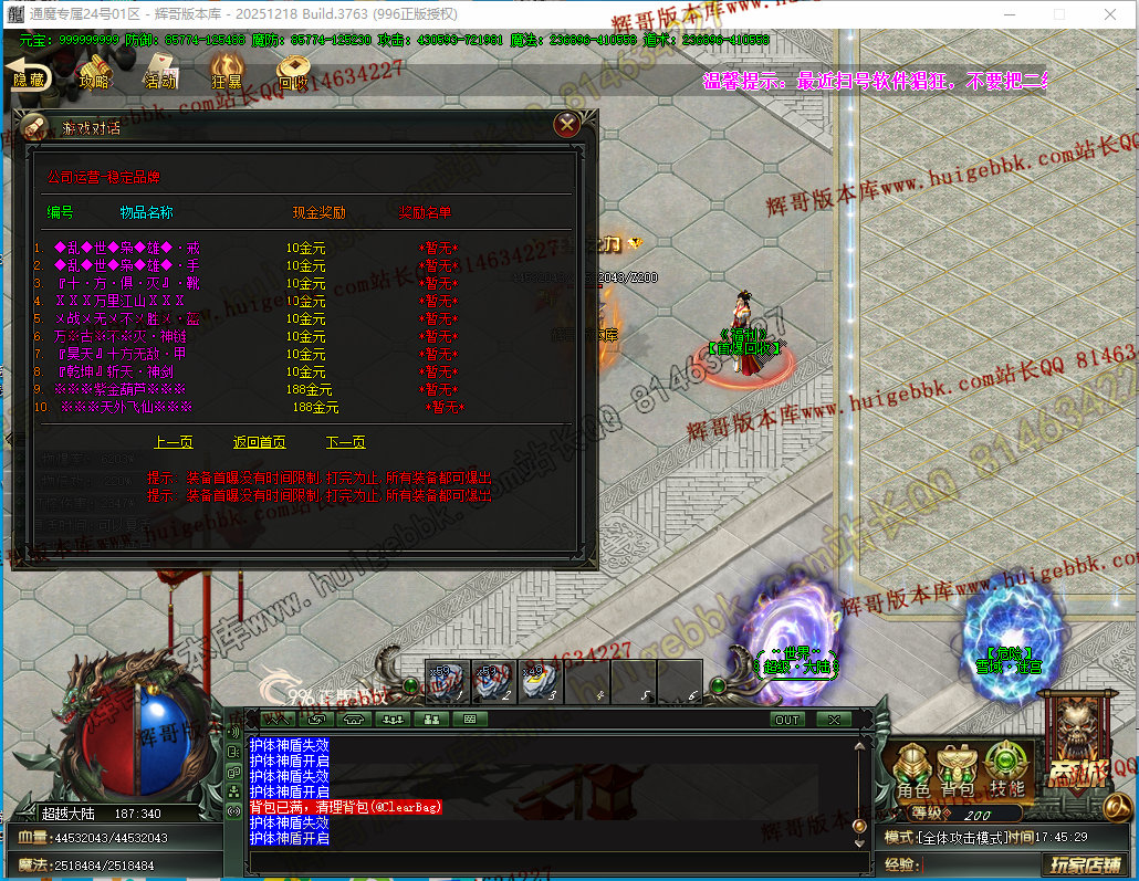 如果发现影响开区的大问题,可联系站长进行免费修复,细节问题自己处理不负责细节问题,