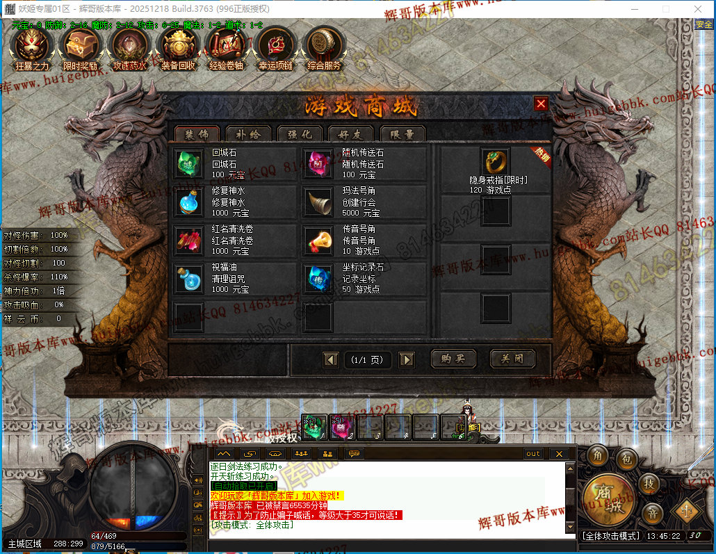 如果发现影响开区的大问题,可联系站长进行免费修复,细节问题自己处理不负责细节问题,