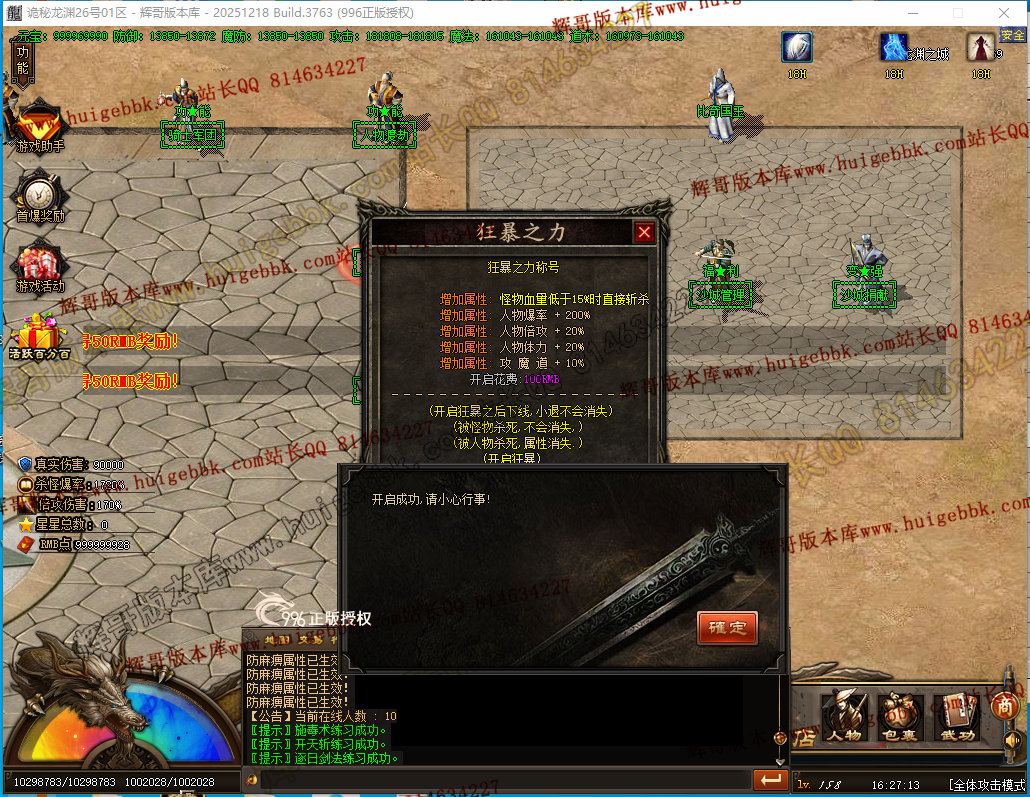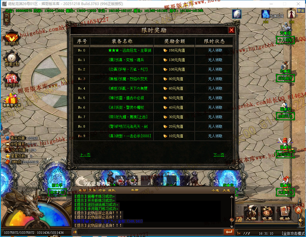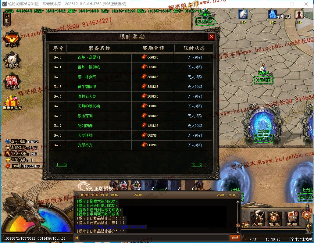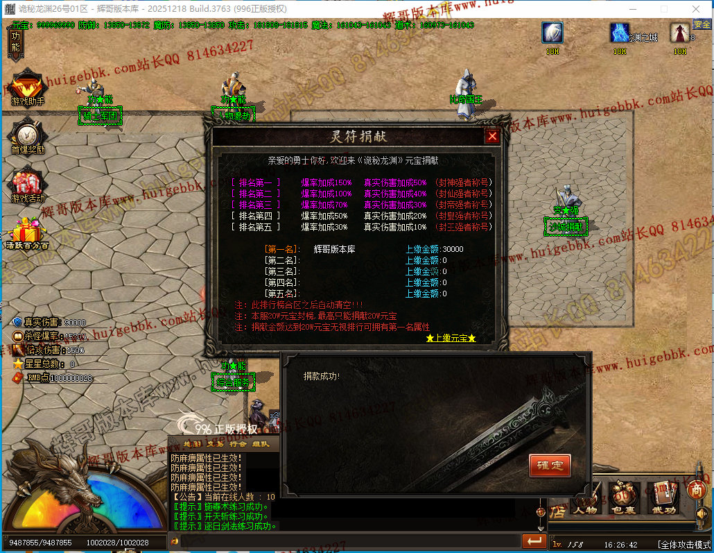 如果发现影响开区的大问题,可联系站长进行免费修复,细节问题自己处理不负责细节问题,