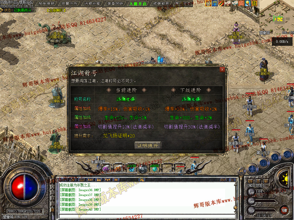1:大量三维属性提升。(高爆率、高切割、高血量)需元宝在商铺购买龙飞扬证明即可升满。也可以选择打怪爆出。